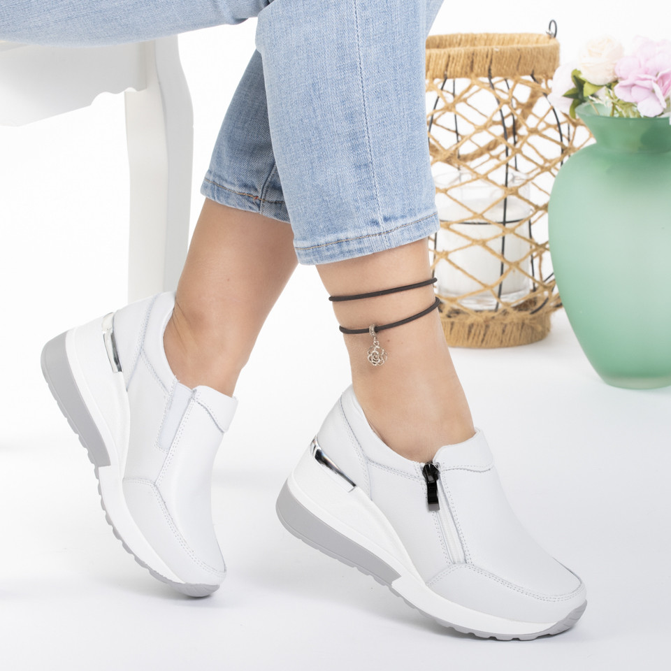 Pantofi Casual Din Piele Naturala Alb AW2023-21