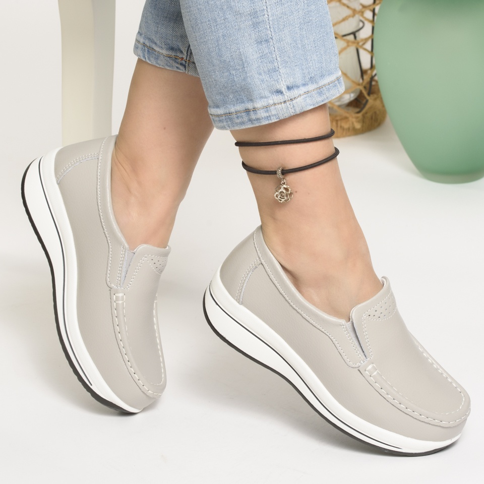 Pantofi Casual Piele Naturala Gri PL-53