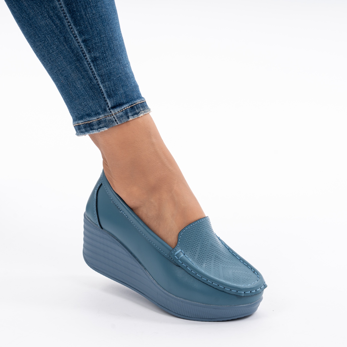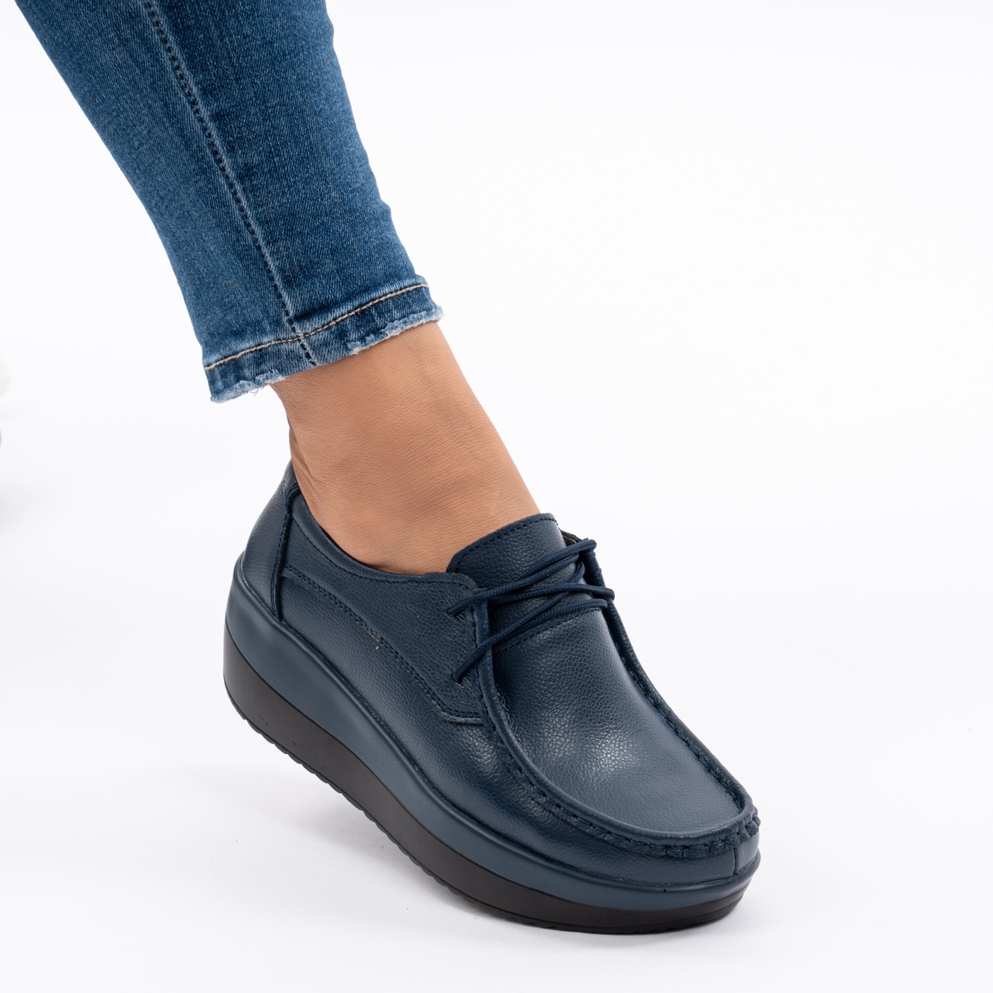 Pantofi Talpa Ortopedica Piele Naturala 1157 Albastri