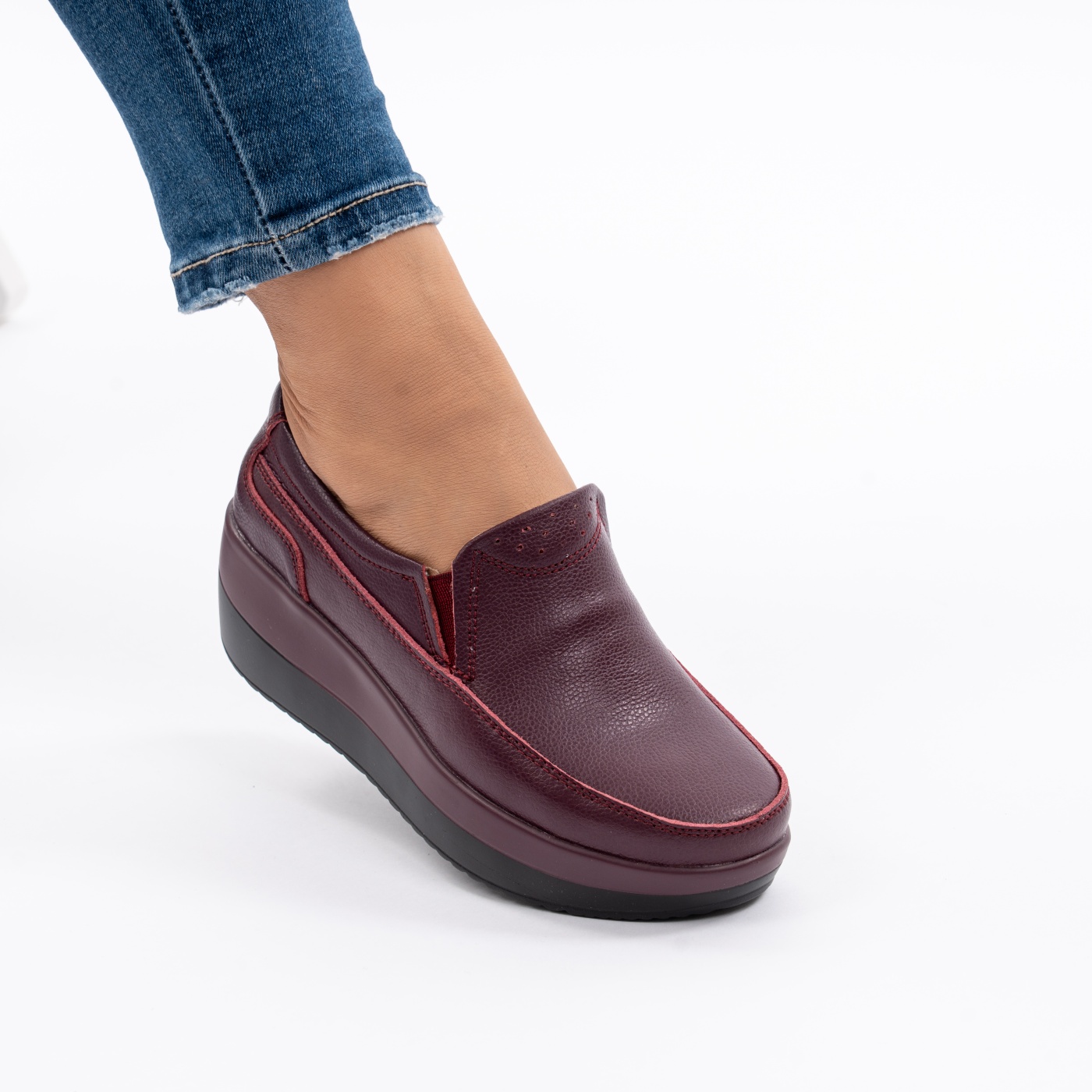Pantofi Talpa Ortopedica Piele Naturala Visiniu 1158
