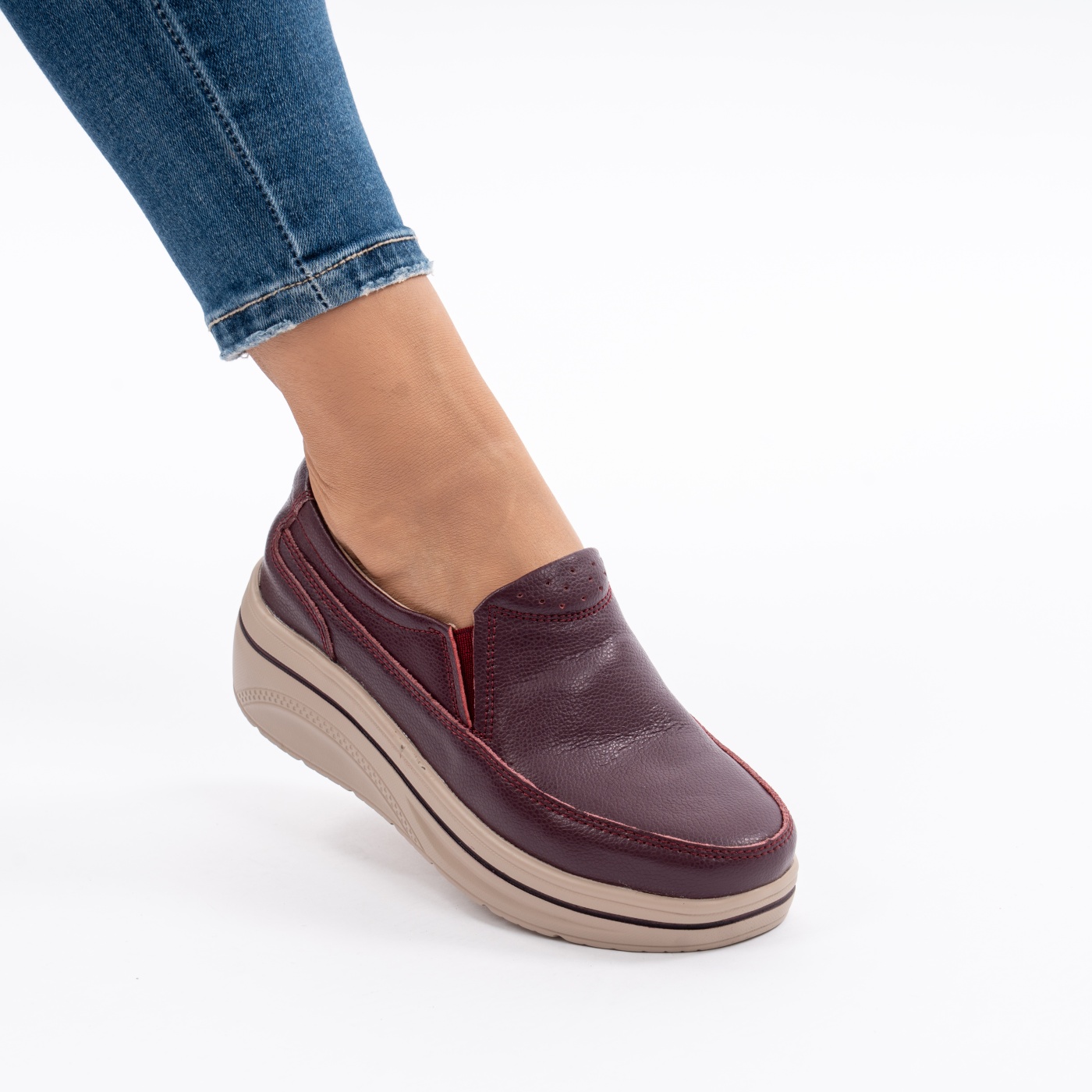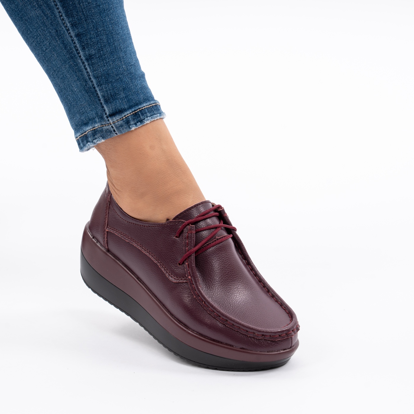 Pantofi Casual Piele Naturala Visiniu 1121-2