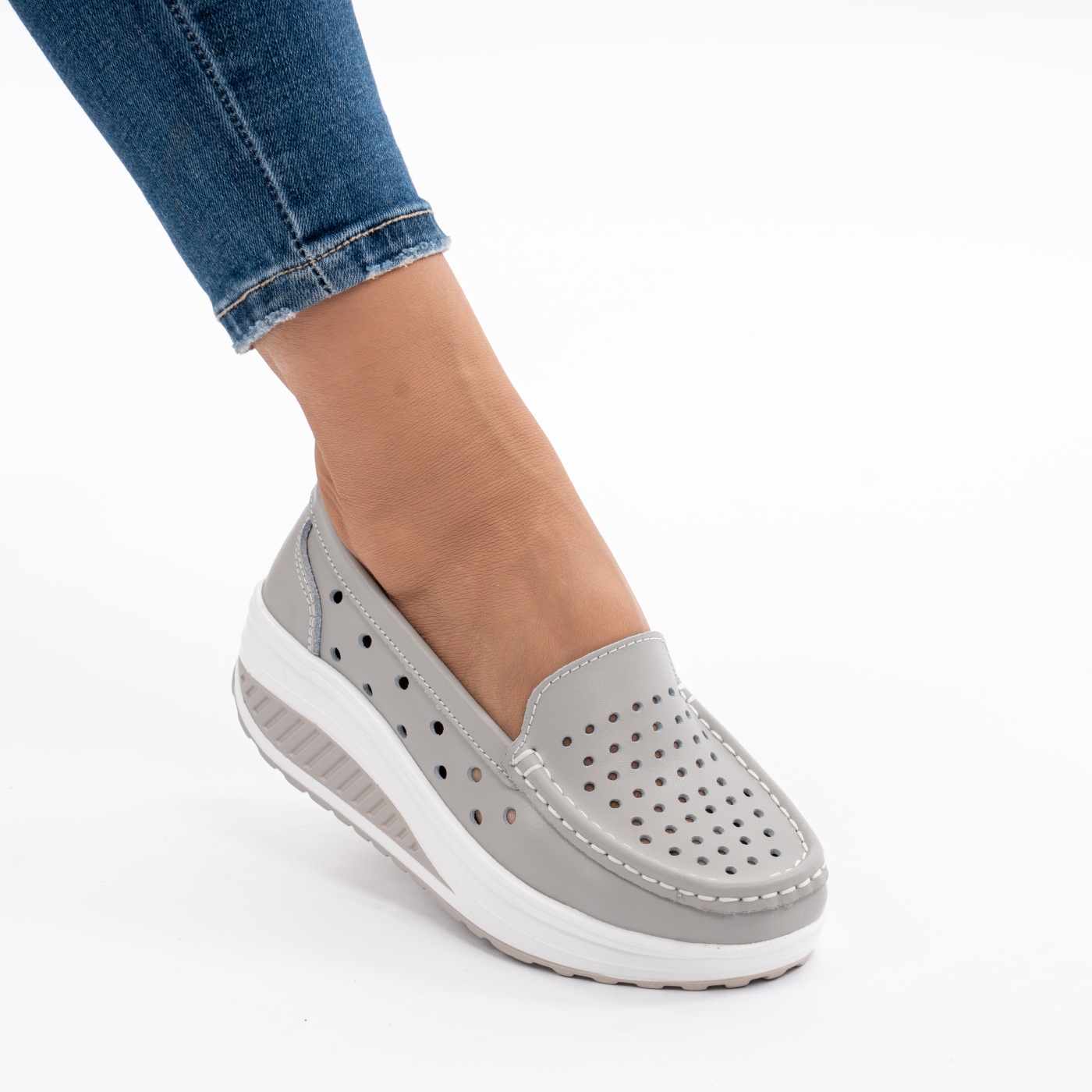 Pantofi Talpa Ortopedica Piele Naturala Gri A335