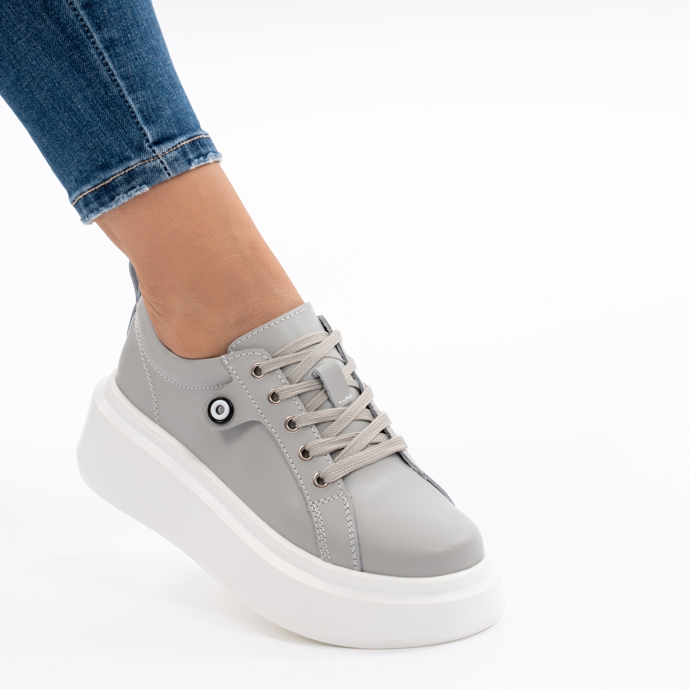 Pantofi Casual Piele Naturala Gri 1121-2
