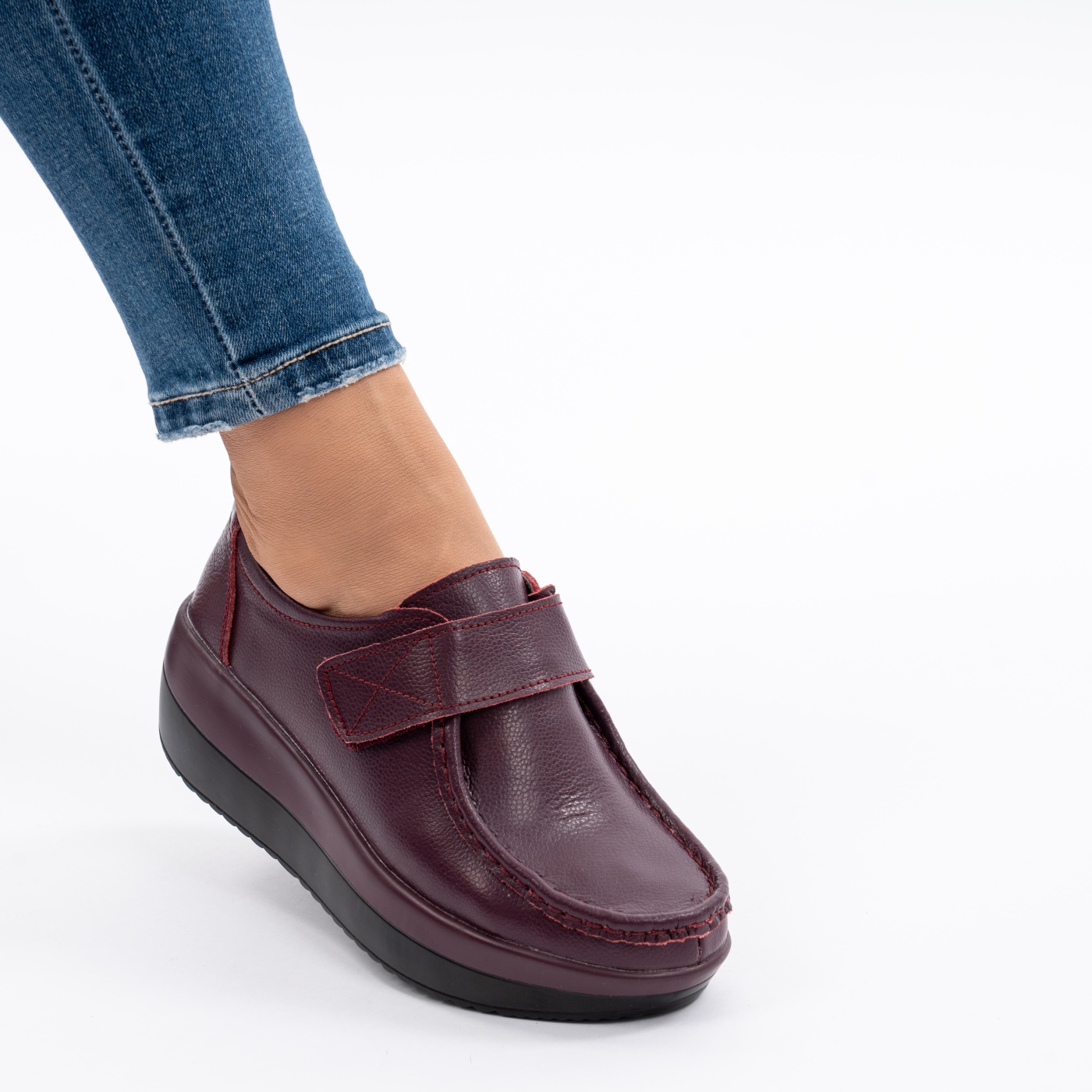 Pantofi Talpa Ortopedica Piele Naturala 3107 Visiniu