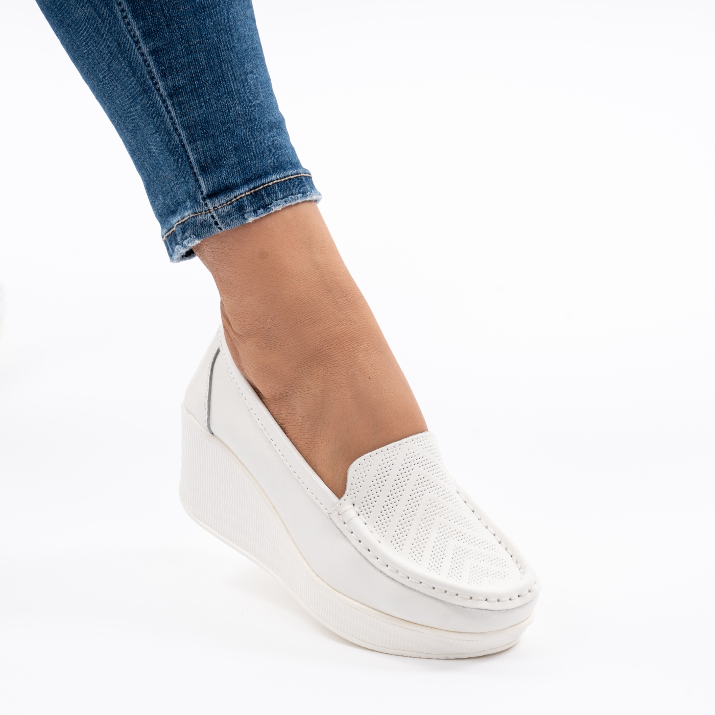 Pantofi Talpa Ortopedica Piele Naturala Albi H17-89