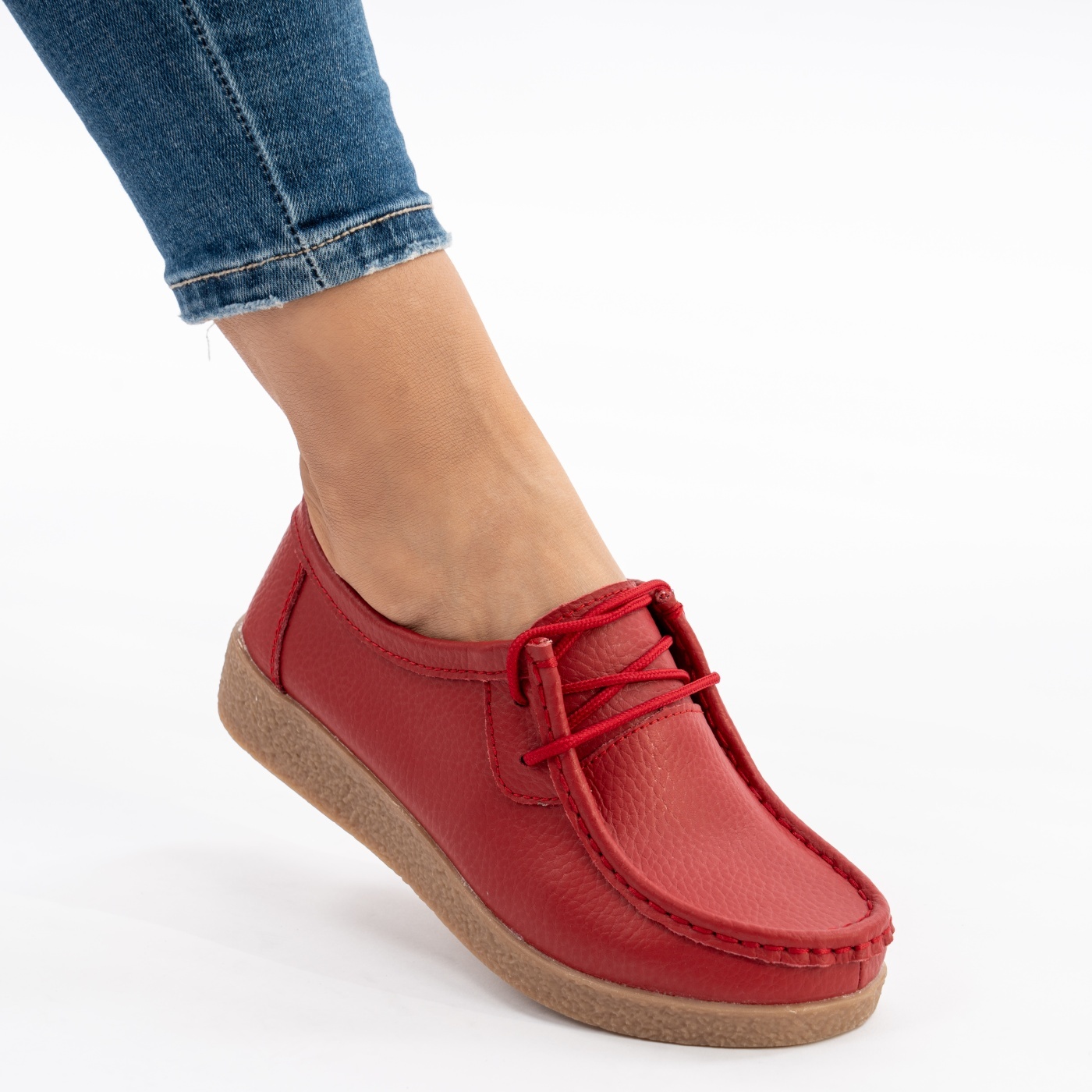 Pantofi Talpa Ortopedica Piele Naturala Rosu A339