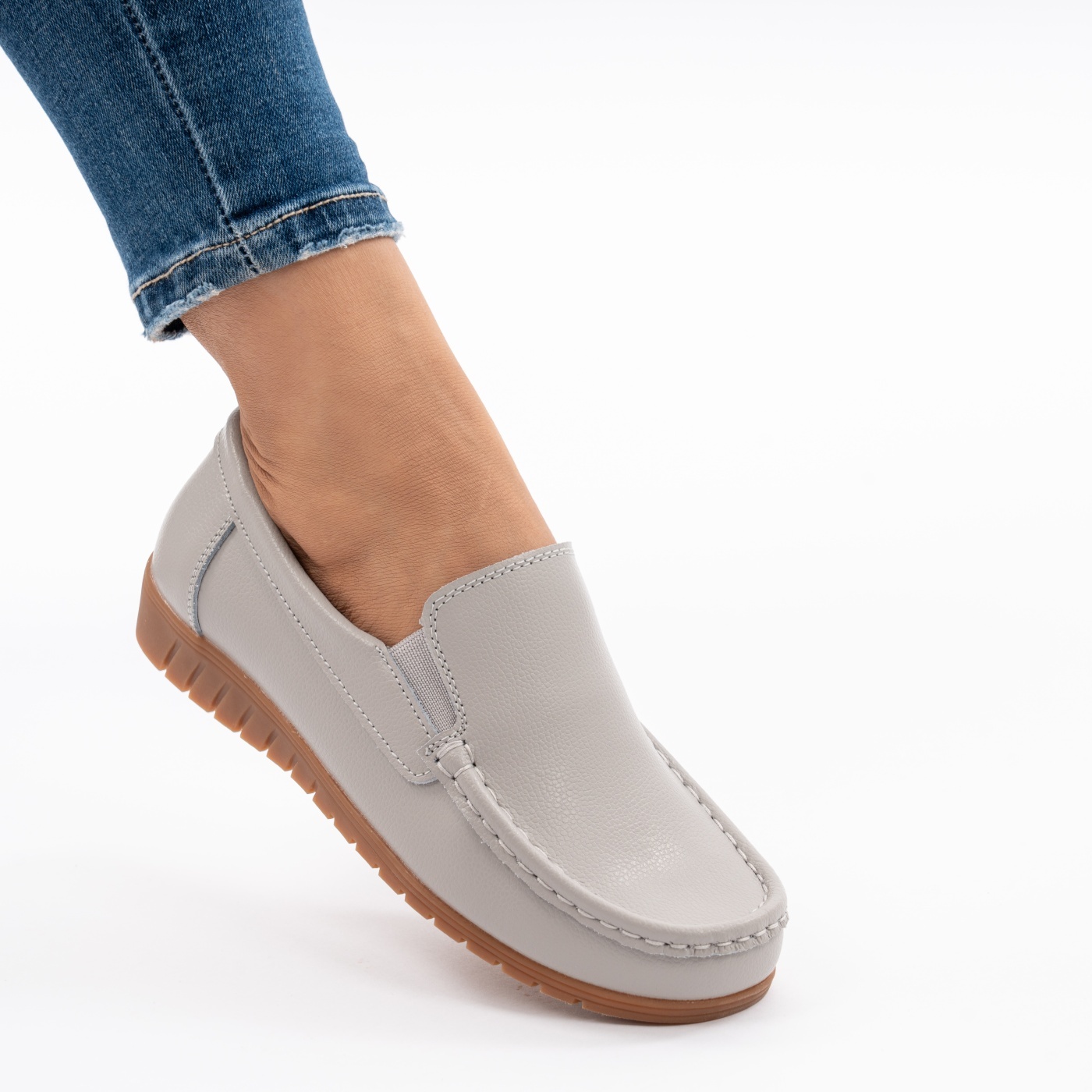 Pantofi Dama Piele Naturala Gri 8055