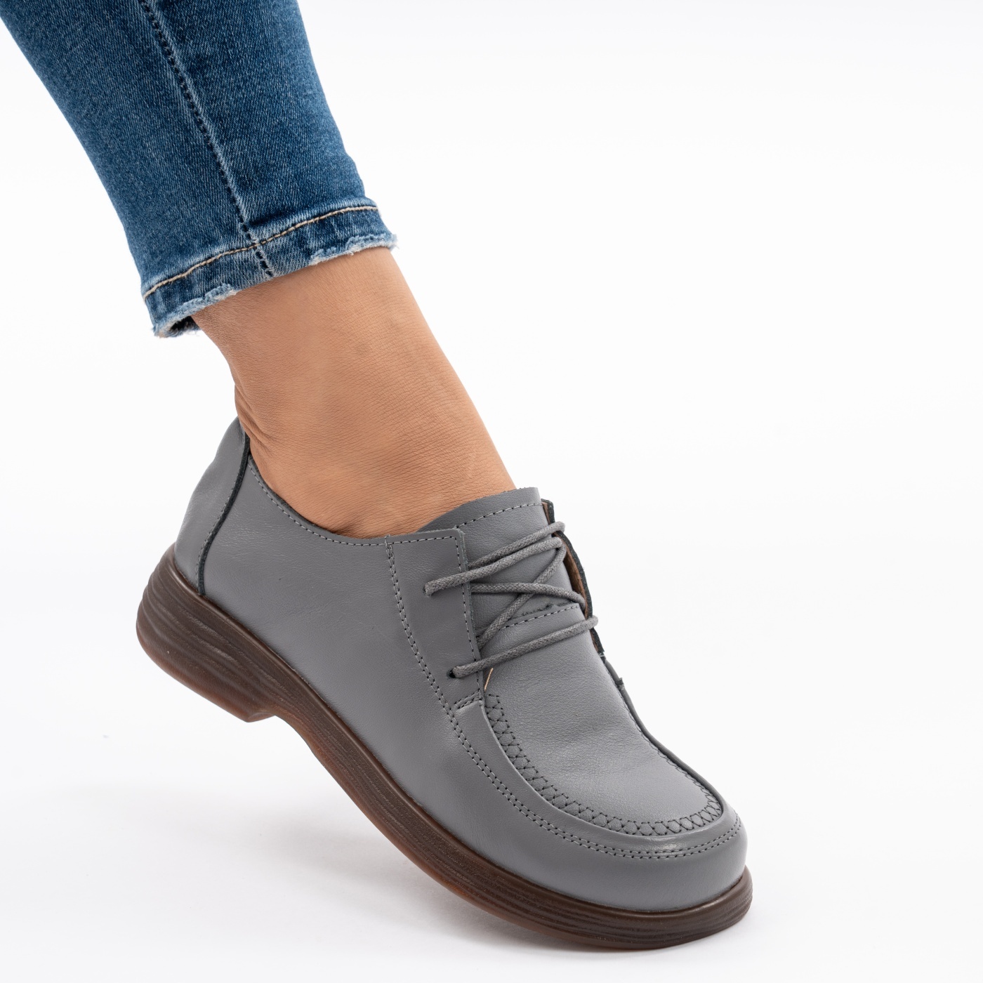 Pantofi Piele Naturala Gri 818