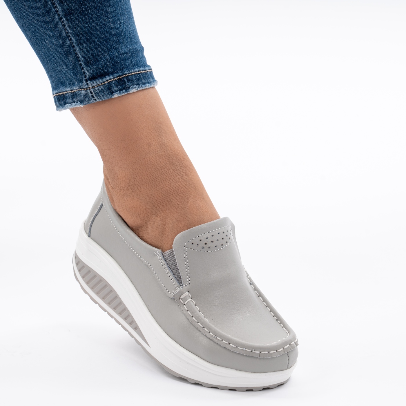 Pantofi Casual Piele Naturala Gri 1121