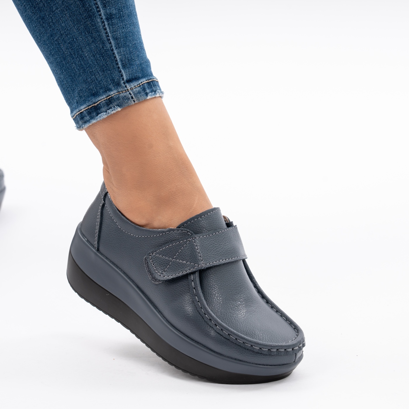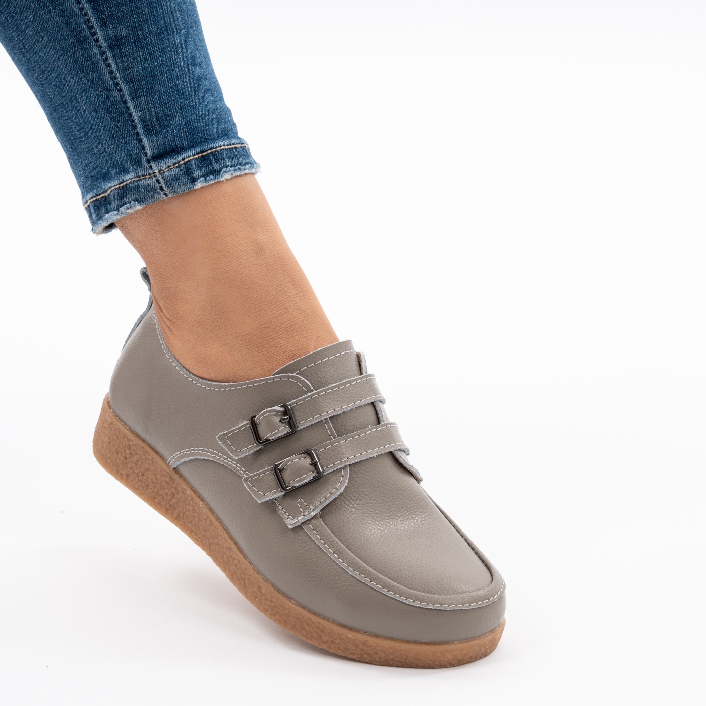 Pantofi Talpa Ortopedica Piele Naturala 1157 Gri