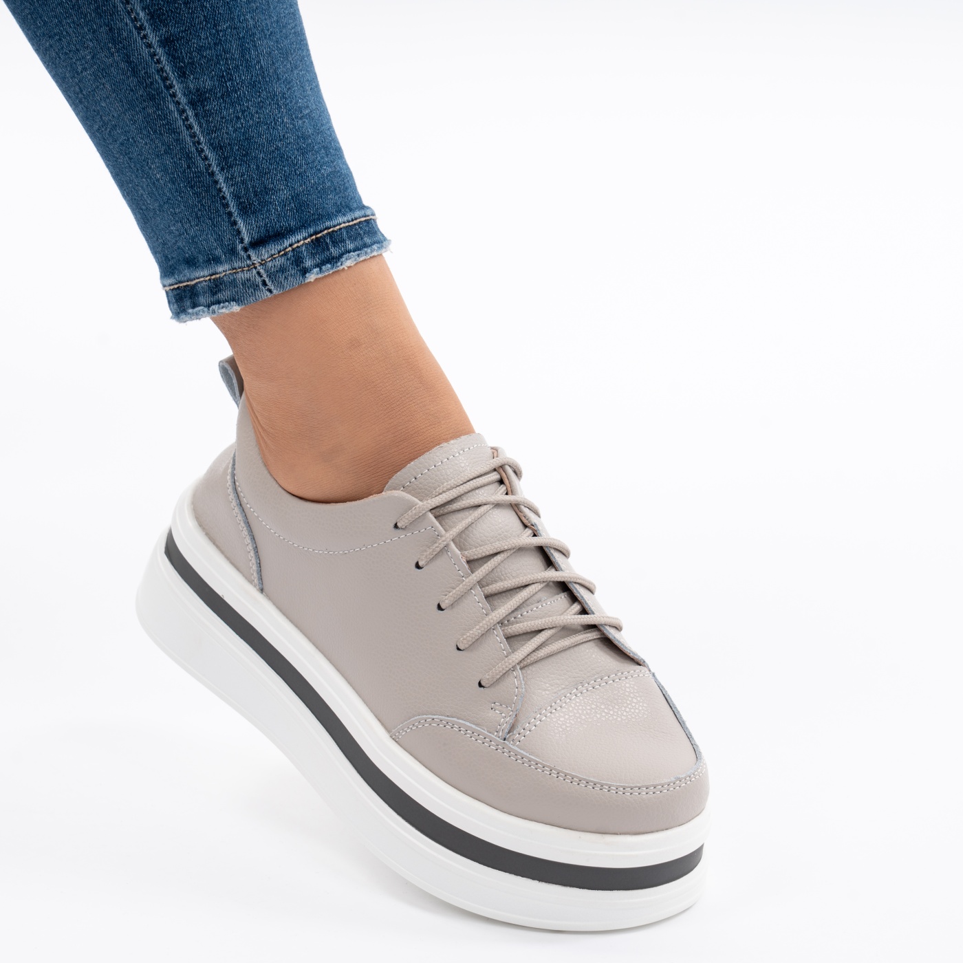 Pantofi Casual Piele Naturala Gri 1901