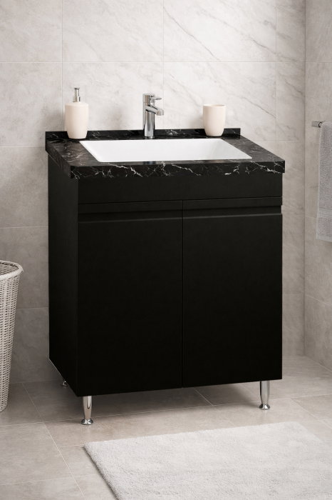 Set Baza front MDF si Lavoar seria 886, montat, 60 cm, negru