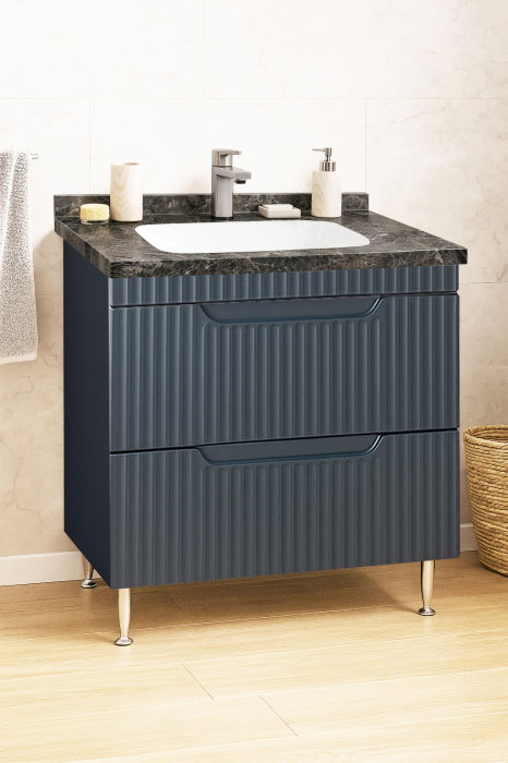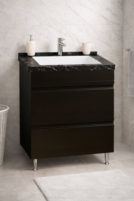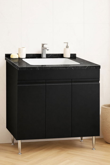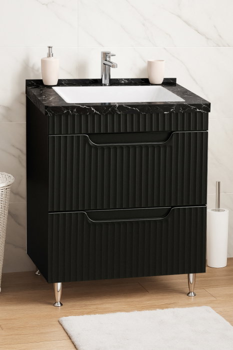 Set Baza front MDF si Lavoar seria 886, cu sertare, montat, 80 cm, negru