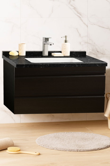 Set Baza front MDF si Lavoar seria 886, suspendata, cu sertare, montat, 80 cm, negru