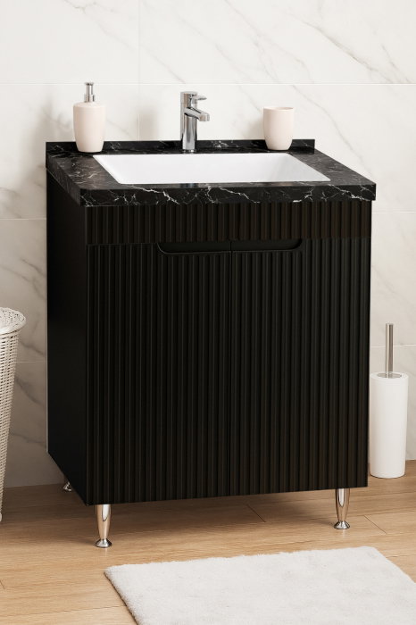 Set Baza front MDF si Lavoar seria 886, montat, 80 cm, negru