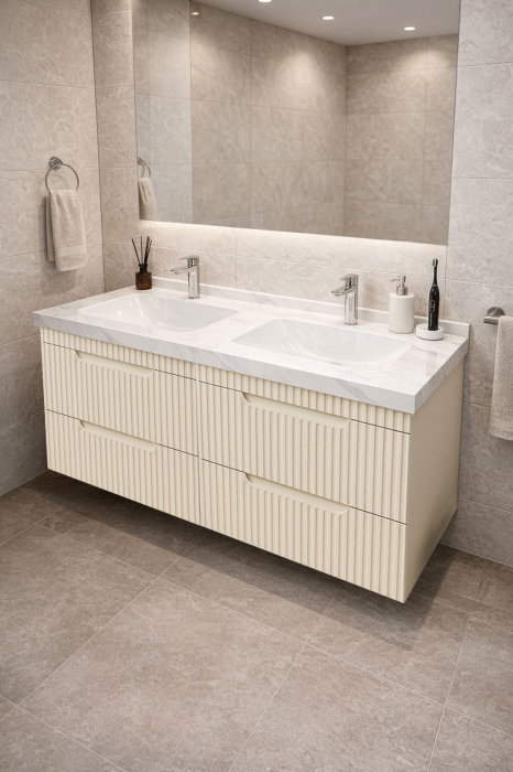 Set Baza front MDF si Lavoar seria 833, suspendata, cu sertare, montat, 120 cm, crem