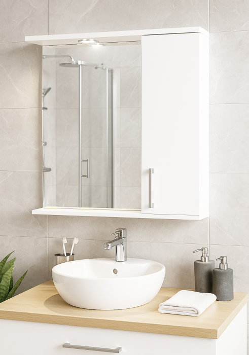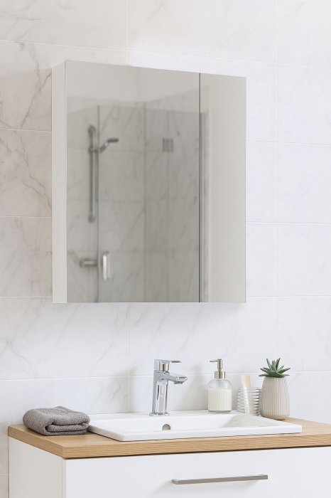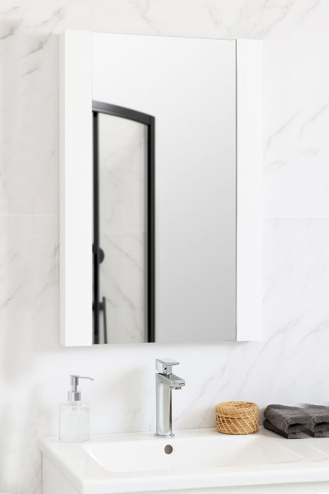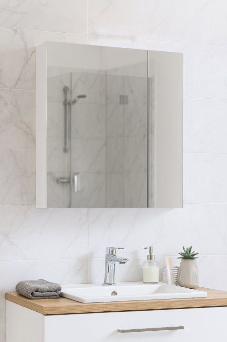 Oglinda seria 144, front MDF, montata, alb, 65x71 cm