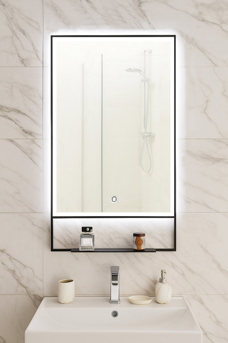 Oglinda cu iluminare LED si intrerupator touch, MD6, rama neagra, 50x70 cm