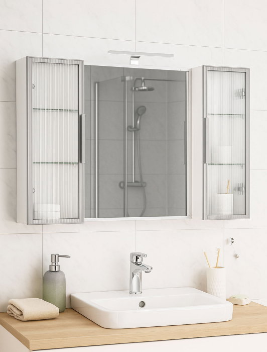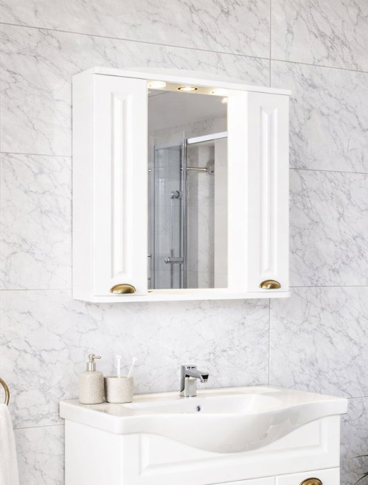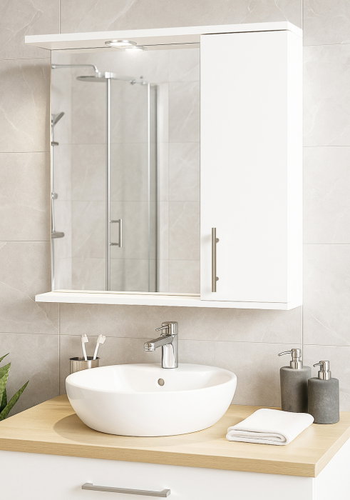 Oglinda seria 020, front MDF, montata, alb, 80x71 cm