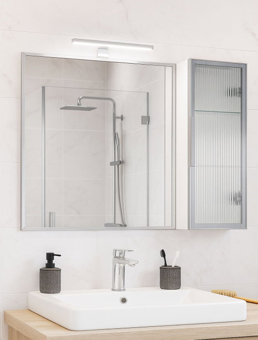 Oglinda seria 020, front MDF, montata, alb, 70x71 cm
