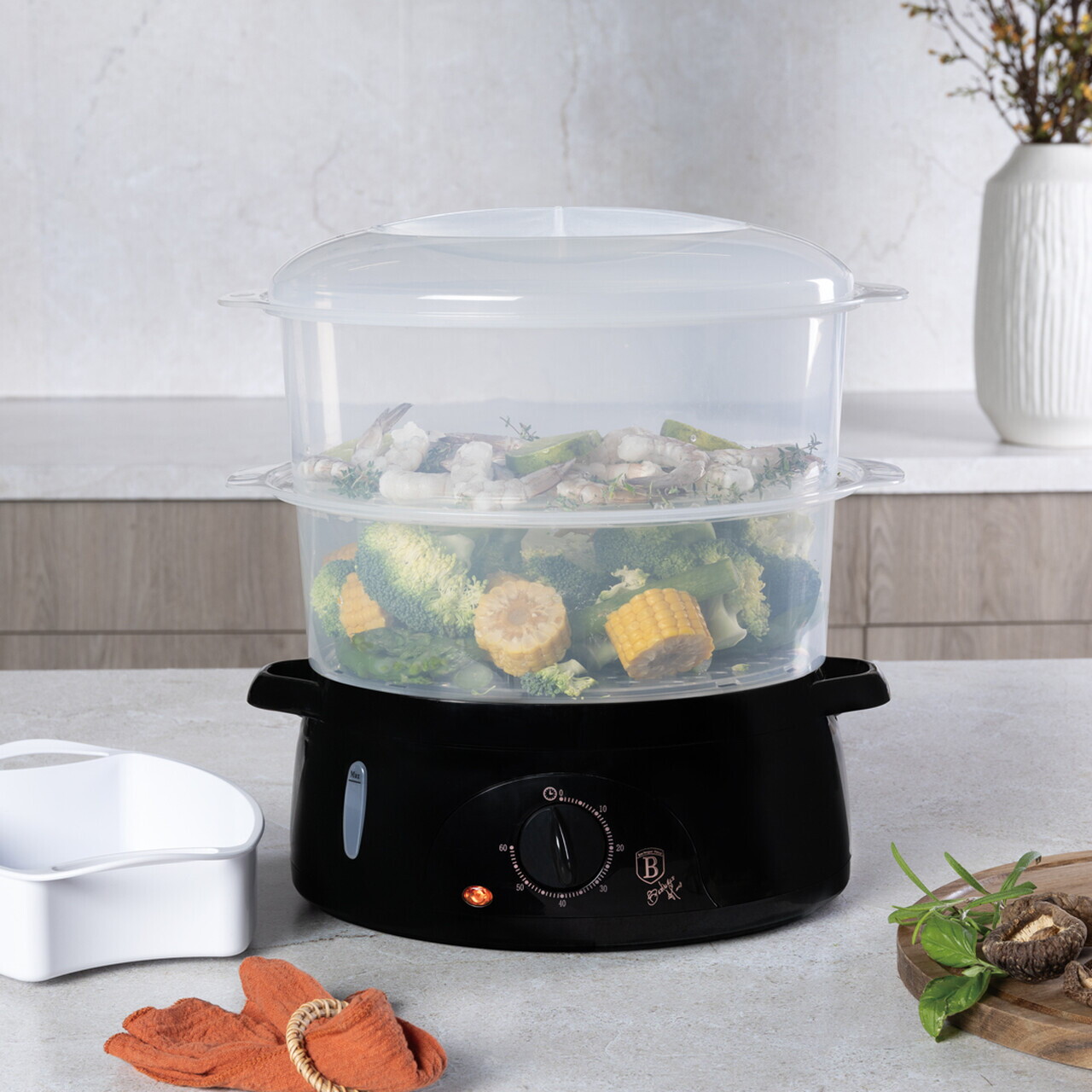 Aparat de gatit la aburi Berlinger Haus, Black Rose, 800W, 6 L, plastic, negru/transparent