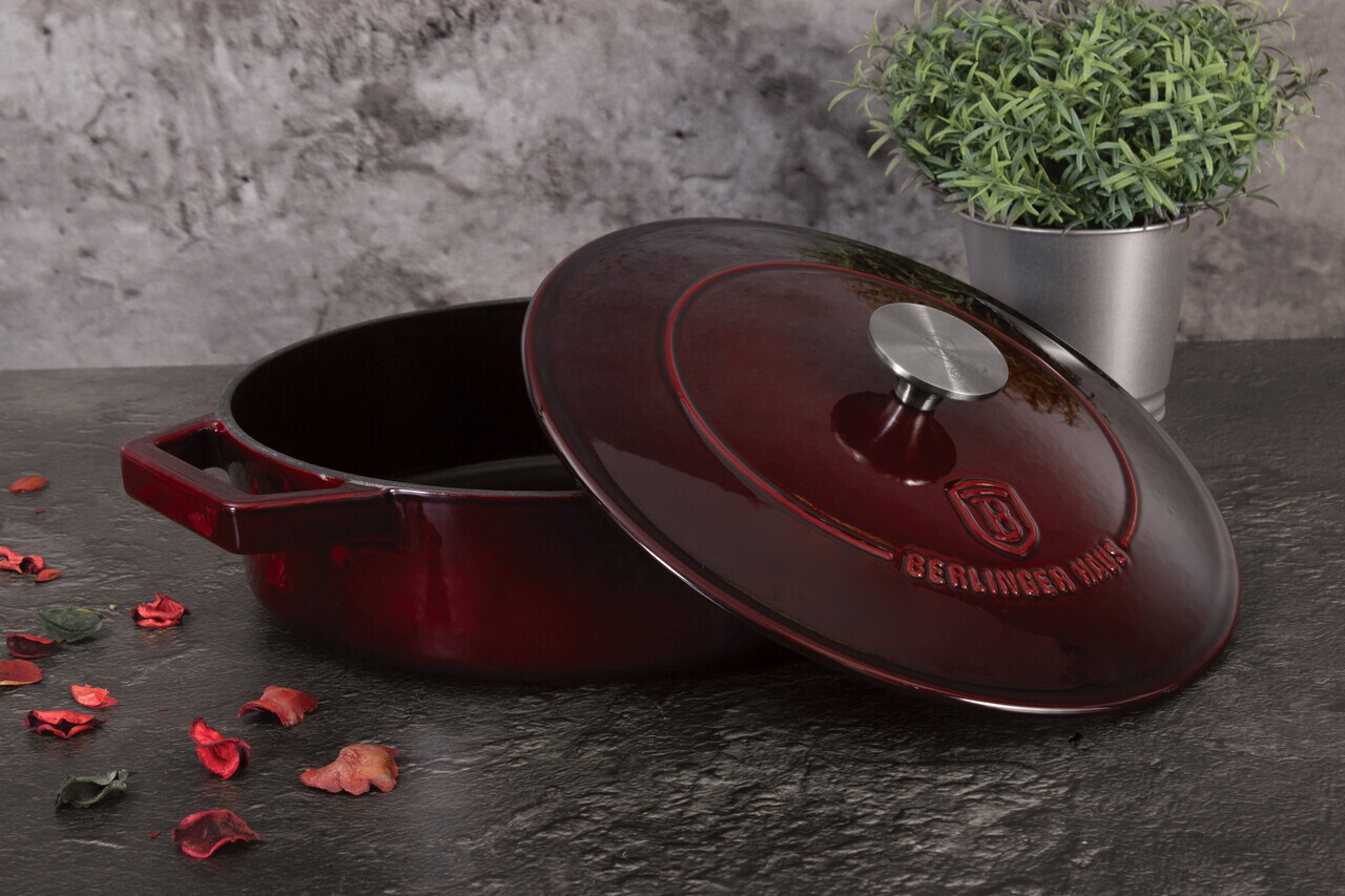 Oala cu capac Berlinger Haus, Strong Mold, 26 cm, 2.57 L, fonta, visiniu