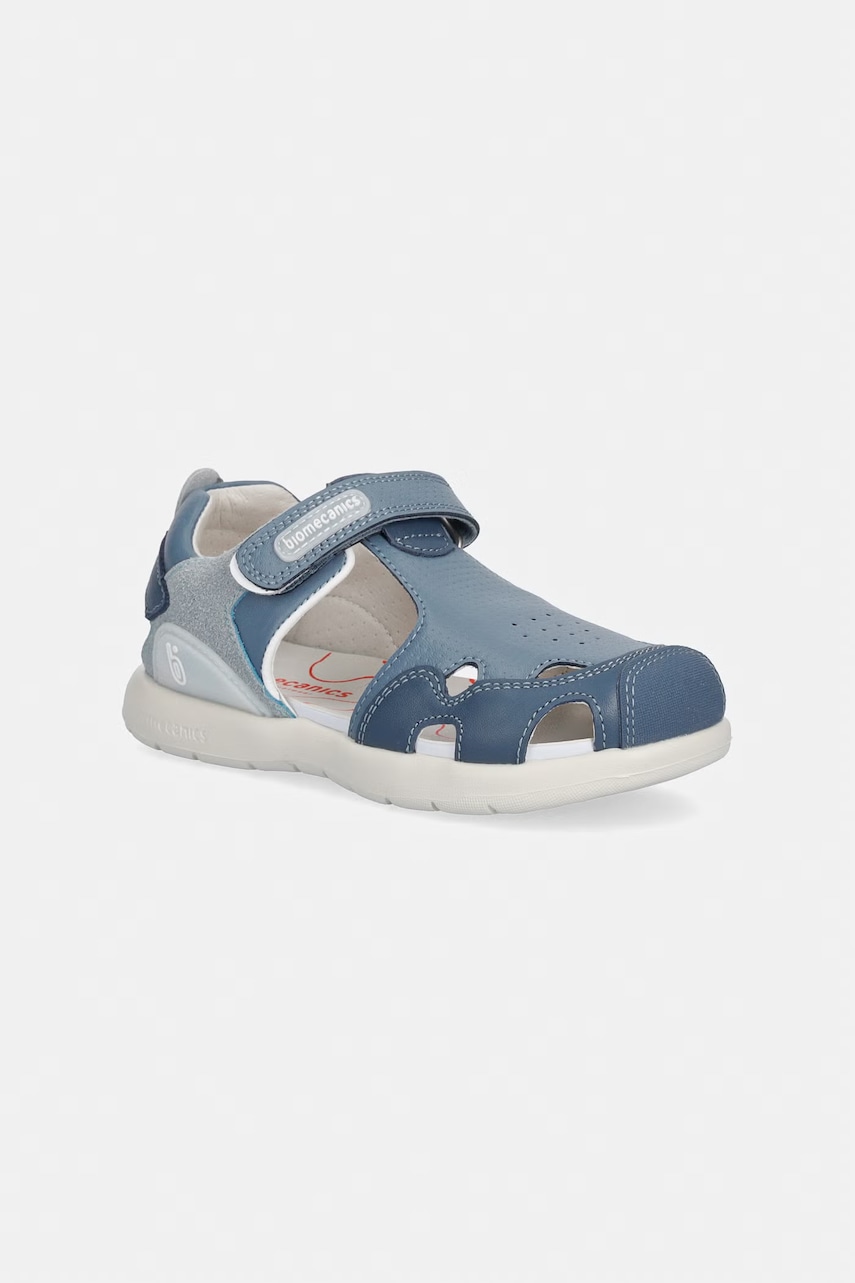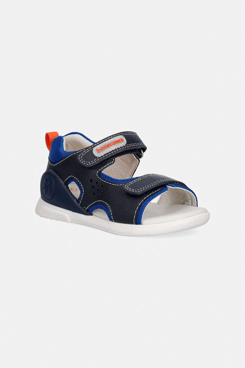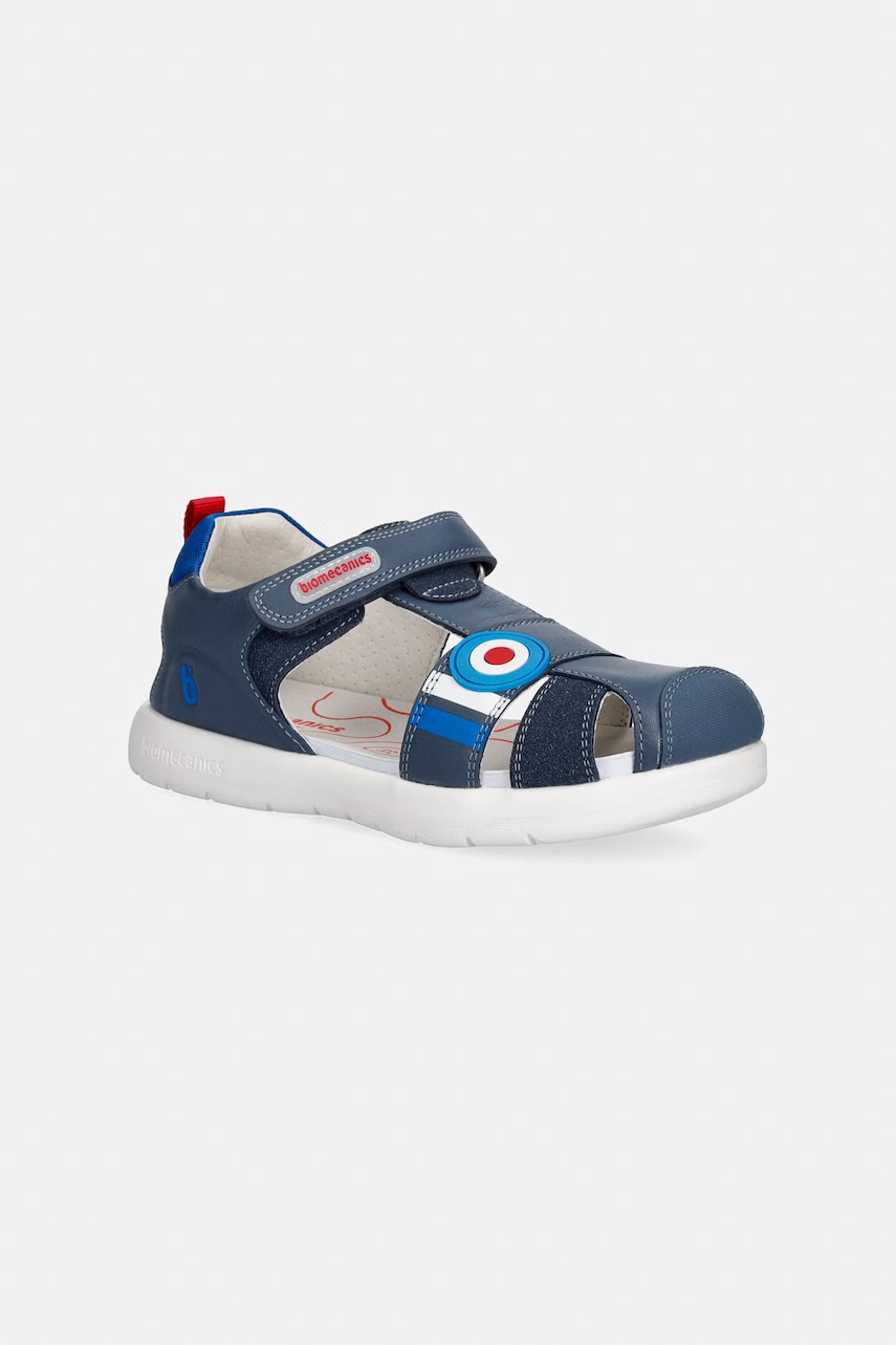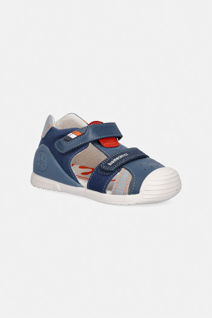 Pantofi sport cu inchidere velcro si logo - Albastru prafuit/Galben pai