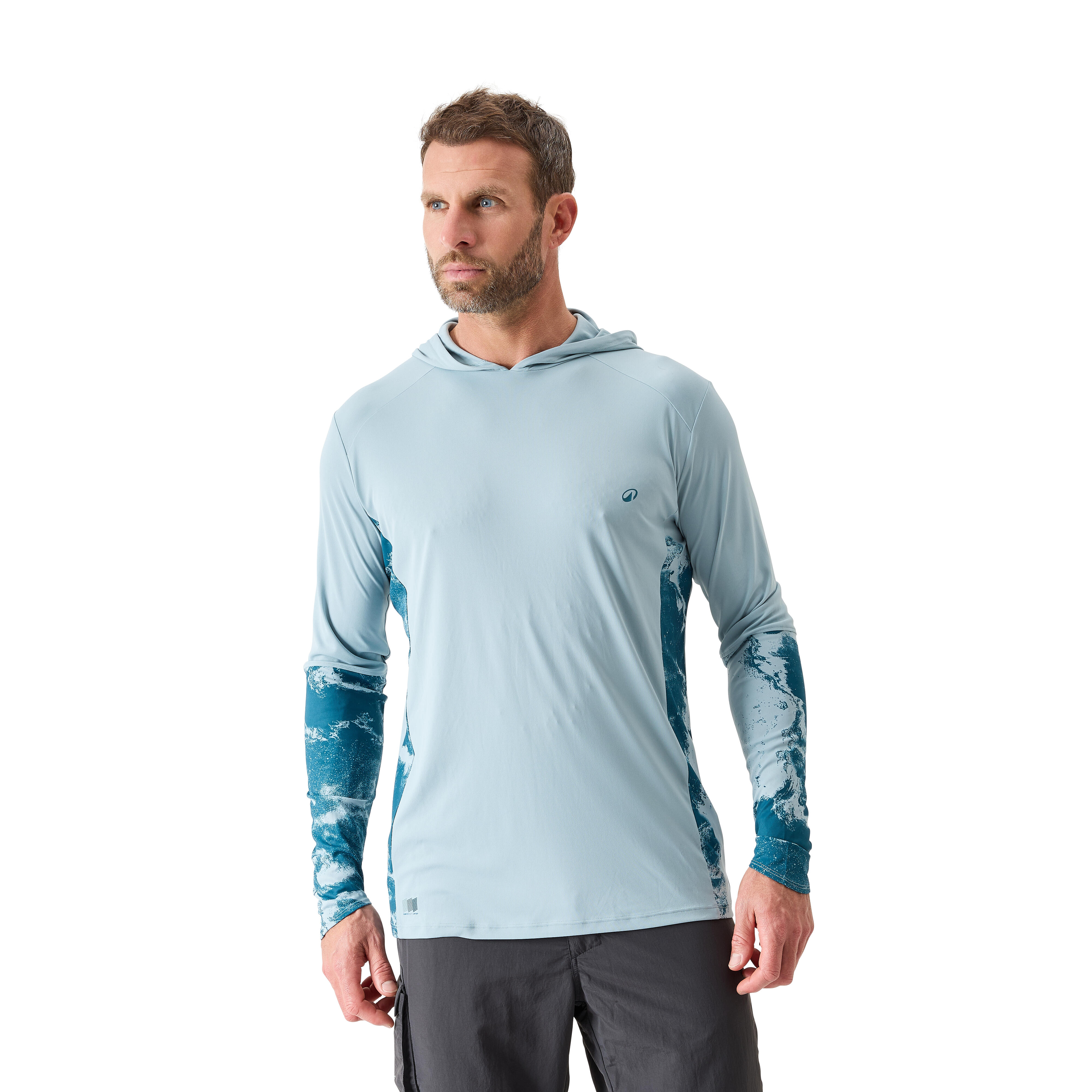 Bluză pescuit Anti-UV 500 cu glugă UPF 50+ Albastru