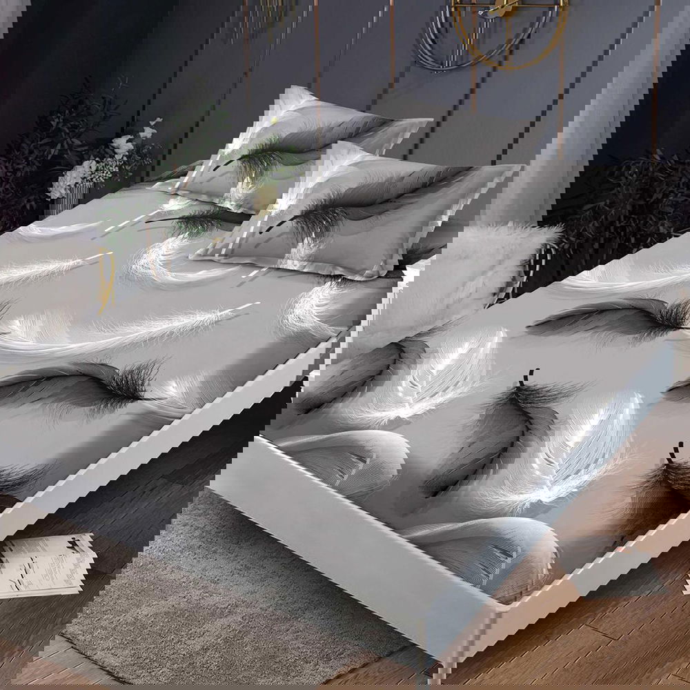 Cearceaf din Bumbac Satinat cu Elastic - 180x200 + 2 Fete Perna - Frunze Gri - CEFN_K022B