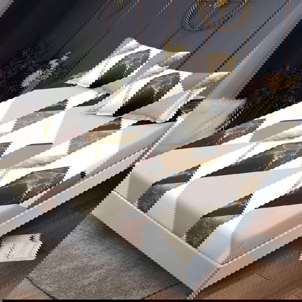 Cearceaf din Finet cu Elastic - 120/140x200 + 2 Fete Perna - Model Marmura - CEFS_M067