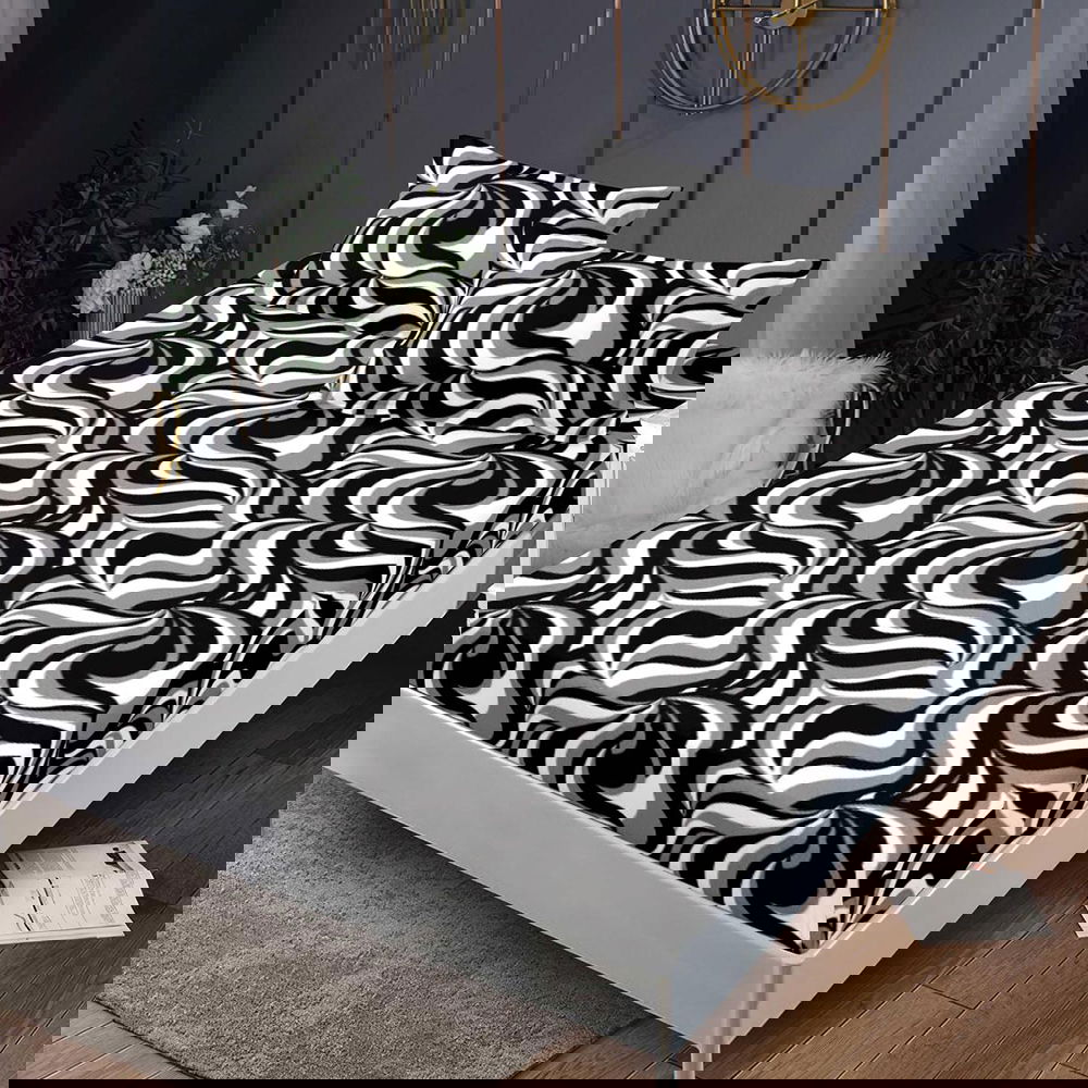 Cearceaf din Finet cu Elastic - 140/160x200 + 2 Fete Perna - Fluturi Alb Negru - CEFS_K119B