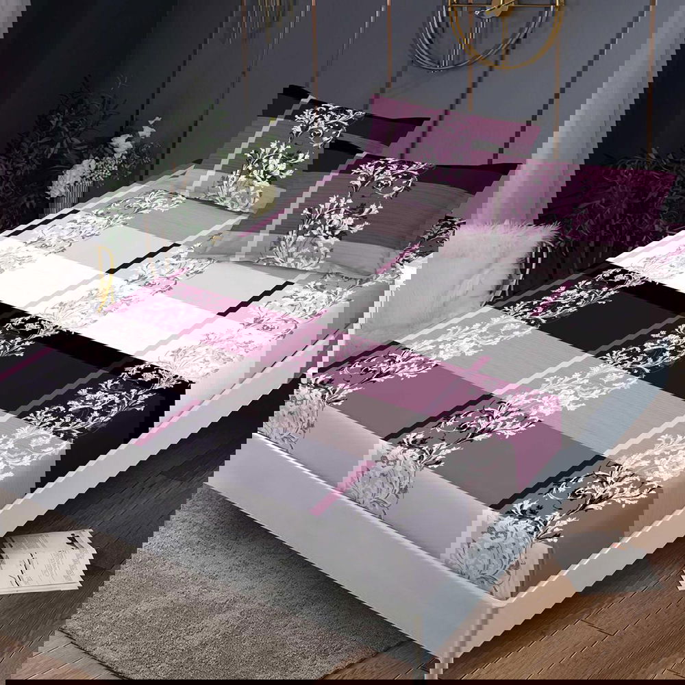 Cearceaf din Finet cu Elastic - 140/160x200 + 2 Fete Perna - Mov cu Ramurele - CEFS_K141C