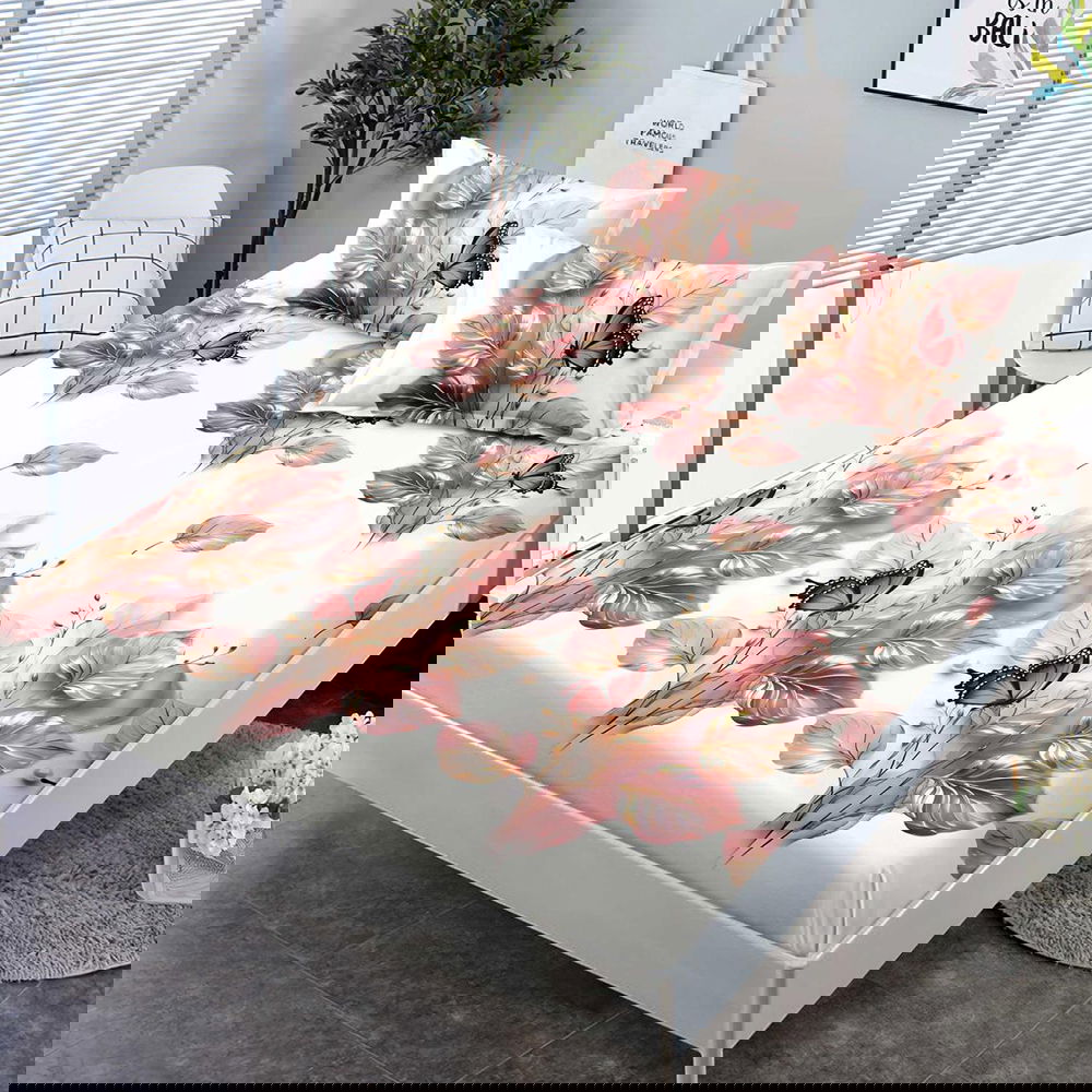 Cearceaf din Finet cu Elastic - 120/140x200 + 2 Fete Perna - Buchete Bujori - CEFS_M065