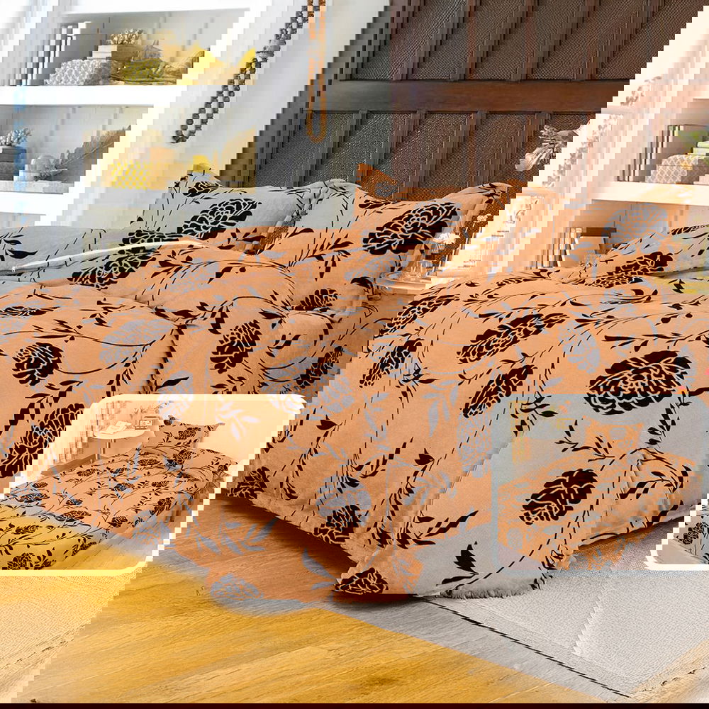 Lenjerie 6 Piese Bumbac Finet 5D - Flori Mari Mov și Bej - LFDS_A143C