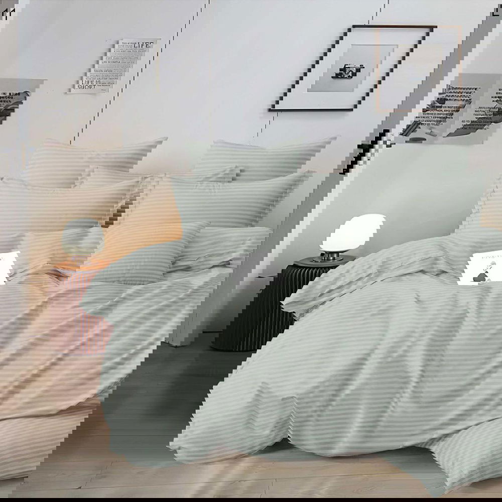 Lenjerie de Pat Damasc Premium 6 Piese cu Cearceaf Elastic - Gri Deschis - LDES_H046D