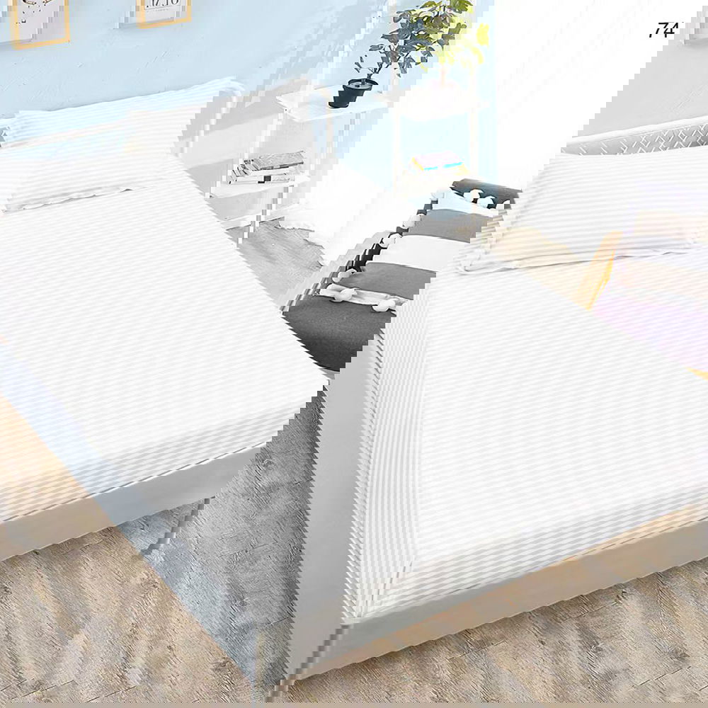 Cearceaf din Damasc Premium cu Elastic - 160/180x200 + 2 Fete Perna - Alb - CED_K045