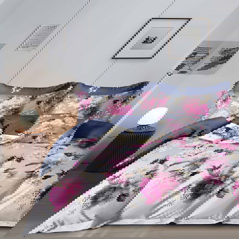 Lenjerie Finet Gros 8 Piese - Flori Albastre si Gri - LF8S_D079