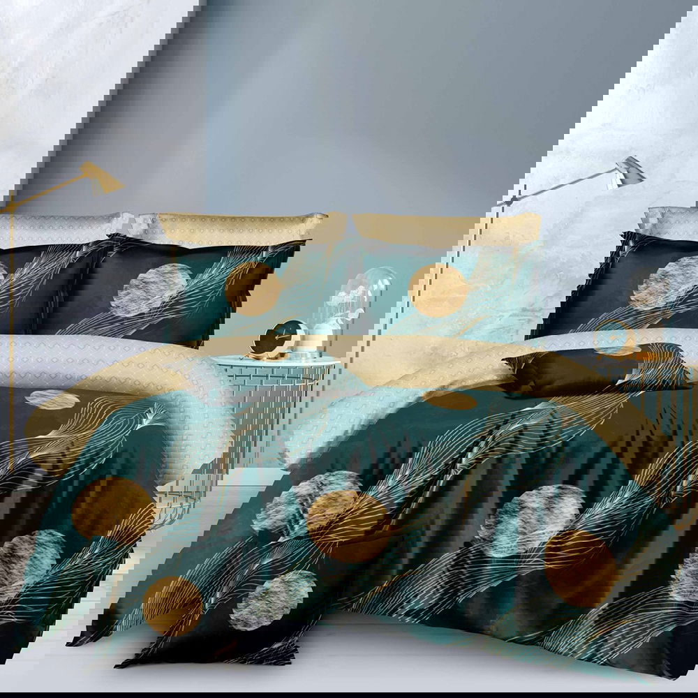 Lenjerie Finet Gros 8 Piese - Verde cu Cercuri Aurii - LF8S_D054