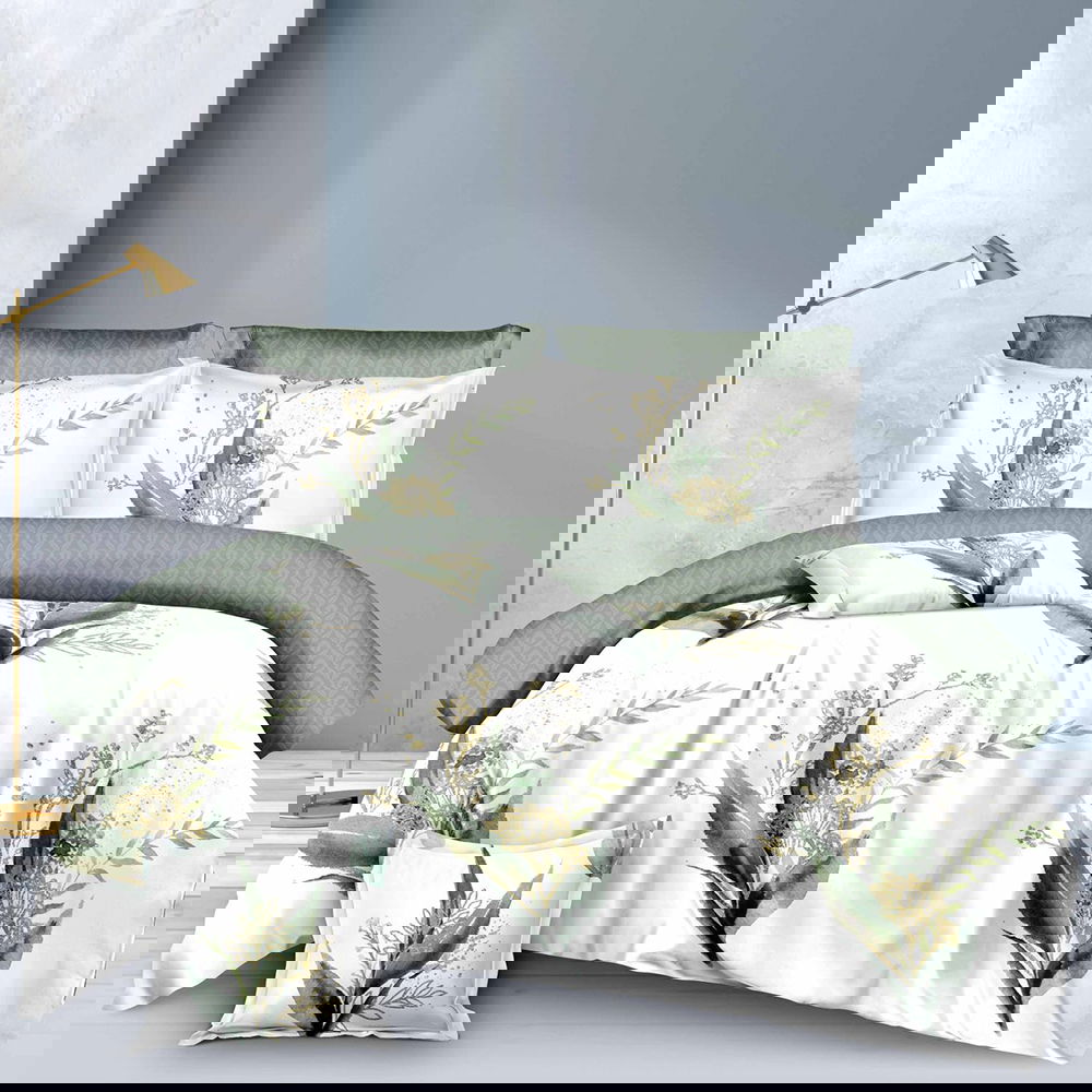 Lenjerie Finet Gros 8 Piese - Verde cu Flori Albe - LF8S_D063
