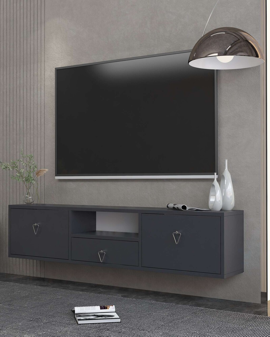 Comoda TV, Hanah Home, 1303-DROP-1, 140x30x30 cm, PAL , Antracit / Argintiu