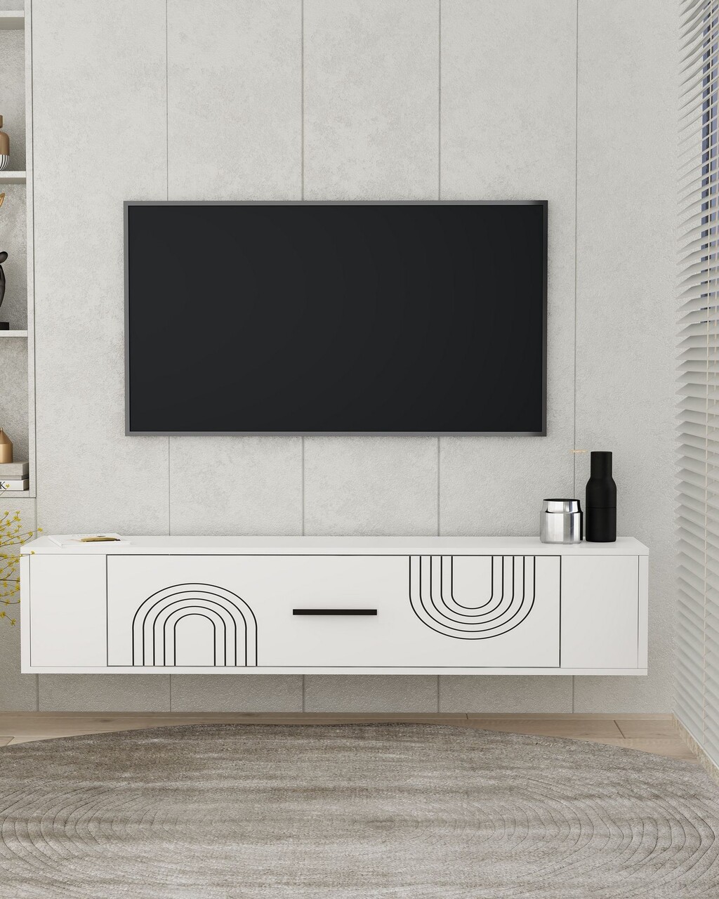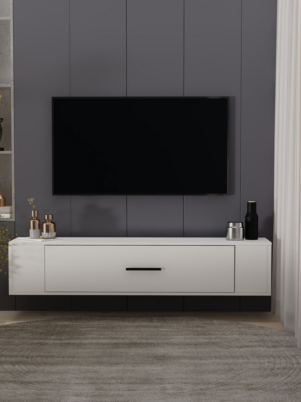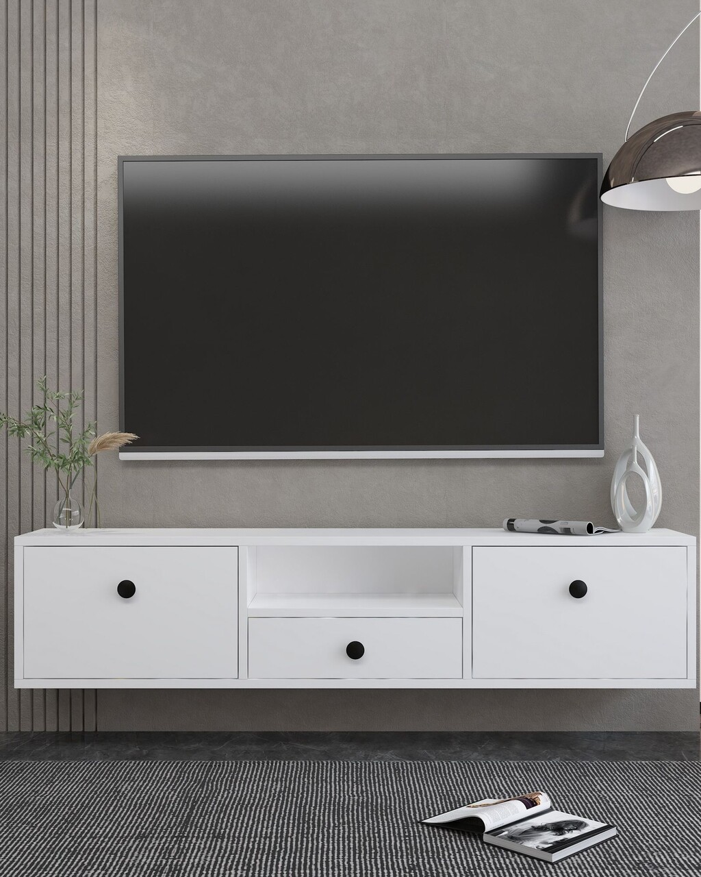 Comoda TV, Hanah Home, 1303-DROP-1, 140x30x30 cm, PAL , Alb/Negru
