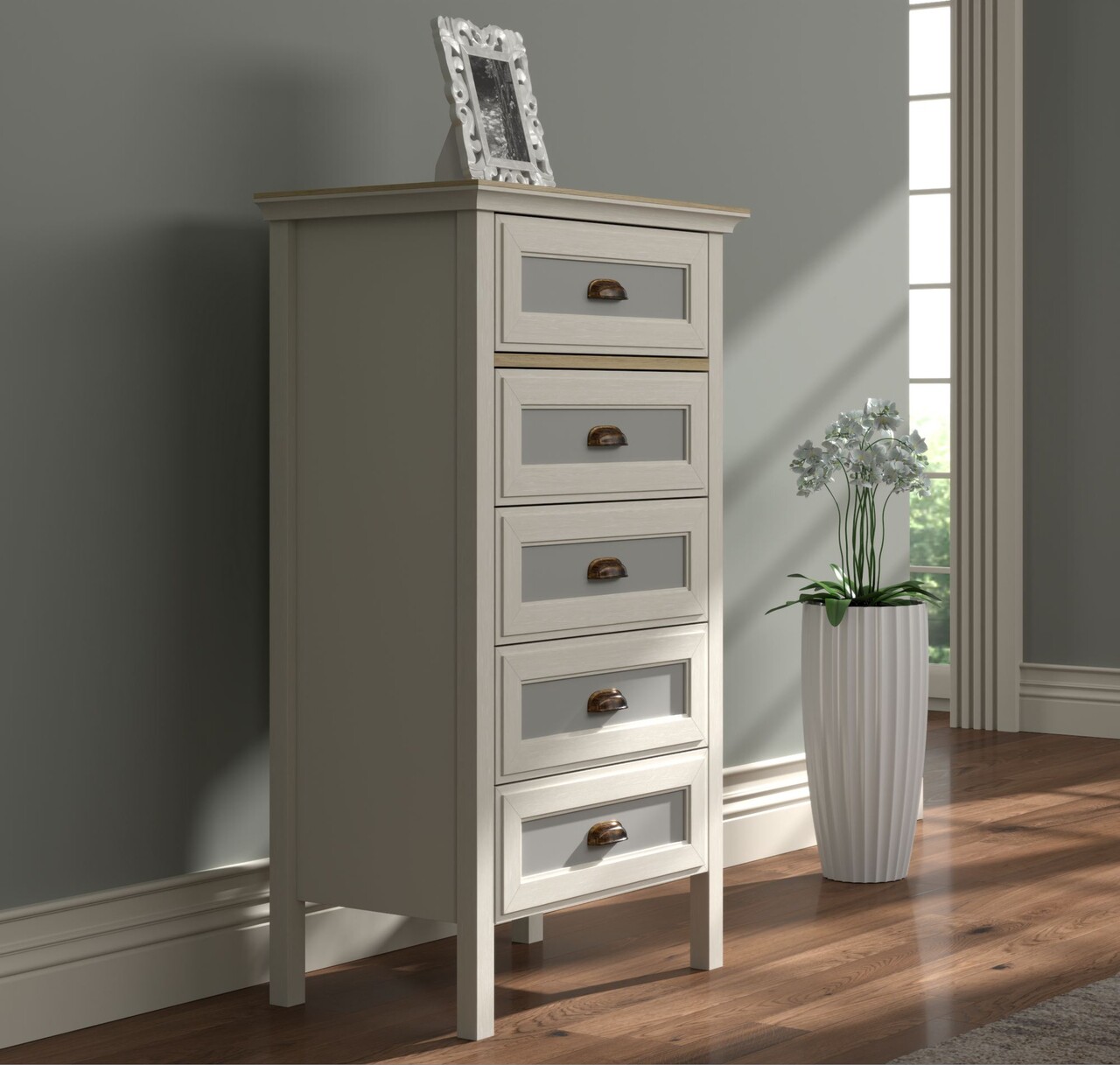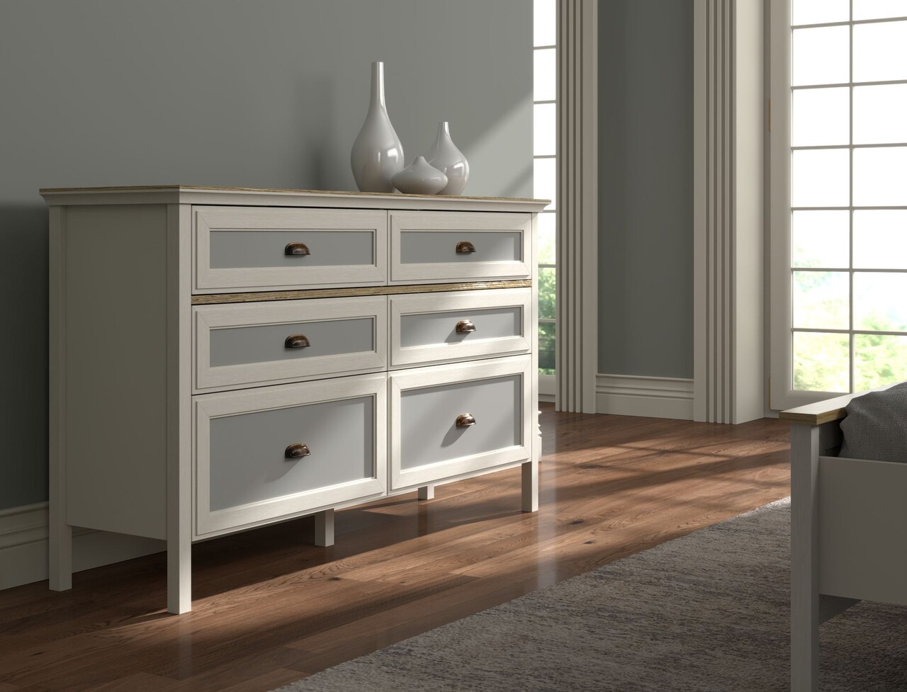 Dulap, Hanah Home, FRN-21014, 155.4x92x44.2 cm, PAL, Crem / Stejar / Gri