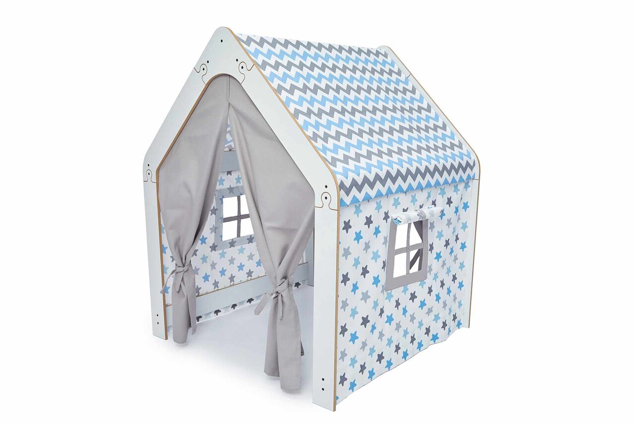 Cort de joaca pentru copii, Hanah Home, Wooden Tent, 95x114x90 cm, Alb/Albastru