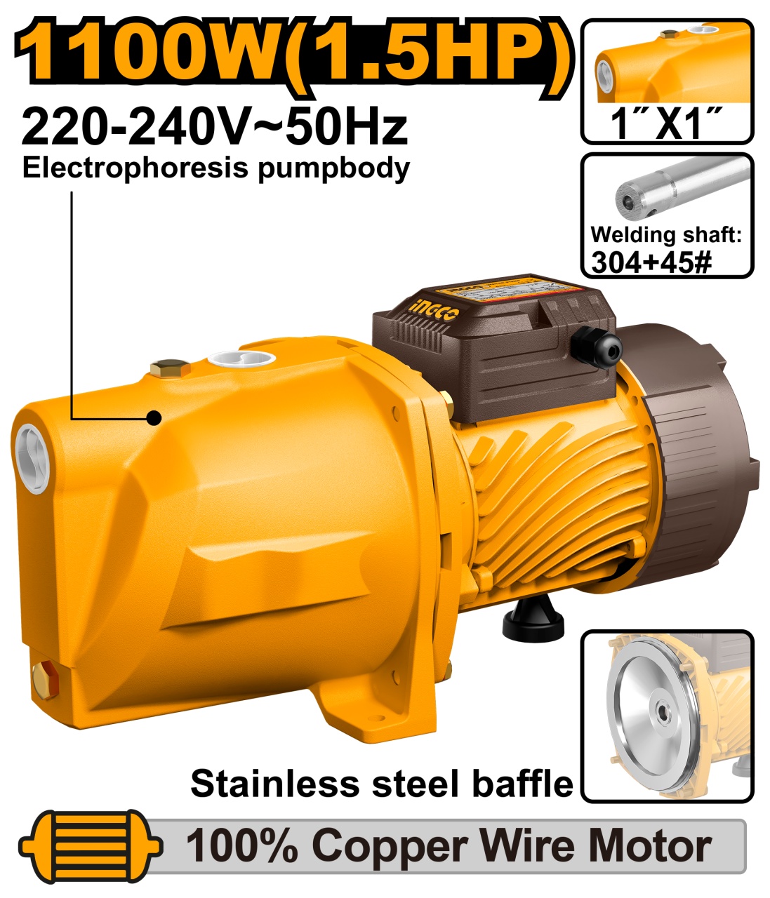 Pompa Apa Jet (Hidrofor) 1100W, 60m, 70L/min, motor cupru, INGCO JP110068