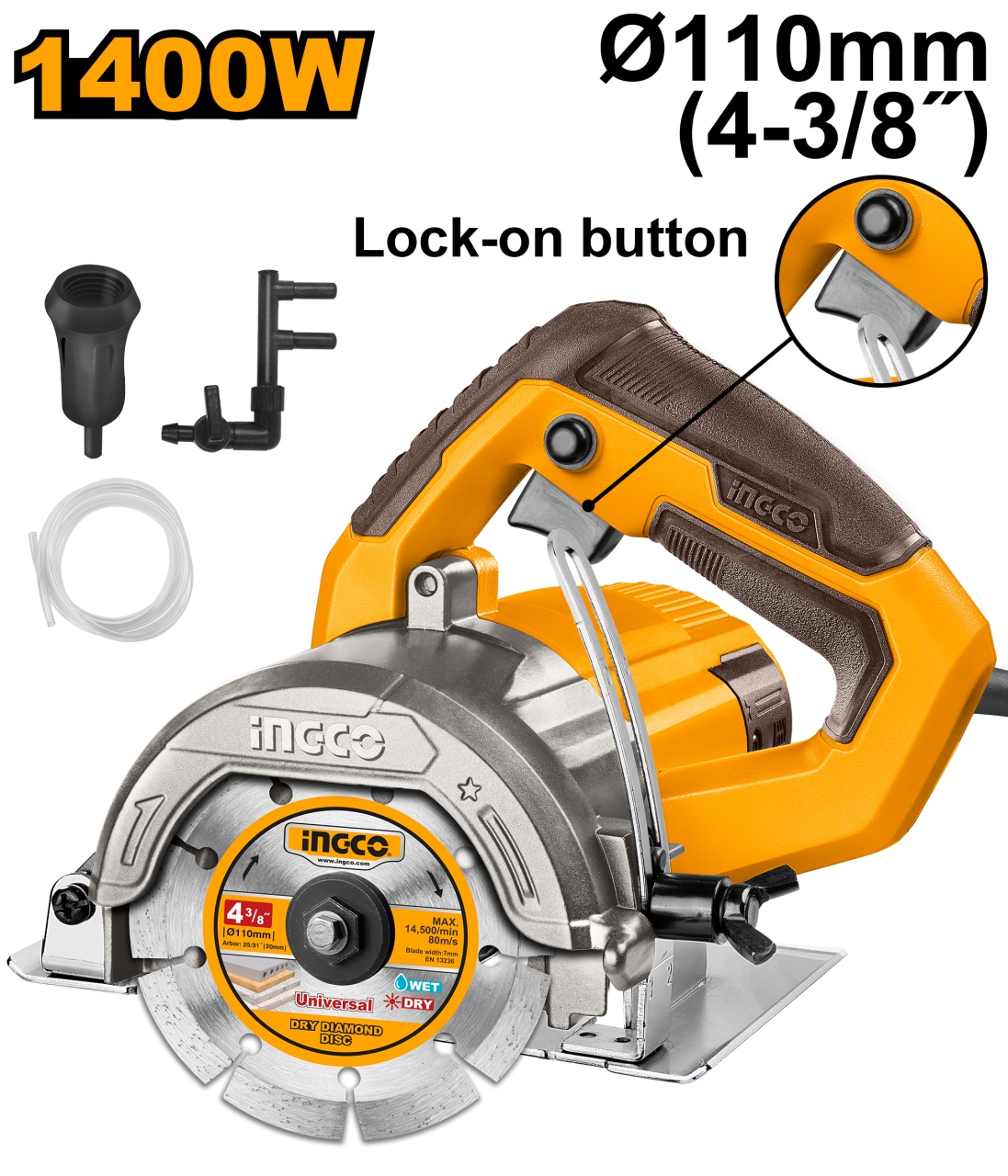 Circular pentru ceramica 1400W, disc diamantat 110mm, 13000rpm, adancime reglabila, INGCO MC140068