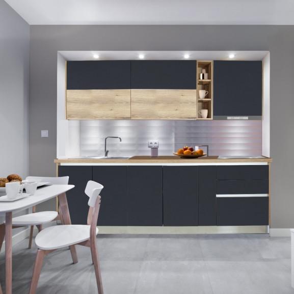 Bucatarie Evo Gri Antracit Si Natur, Front Mdf Lucios, 247.6 X 223 X 60 Cm