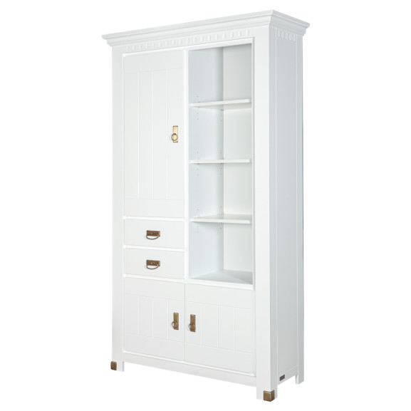 Vitrina Saint Tropez Cu 3 Usi Si 2 Sertare, Vopsit Alb, 111 Cm