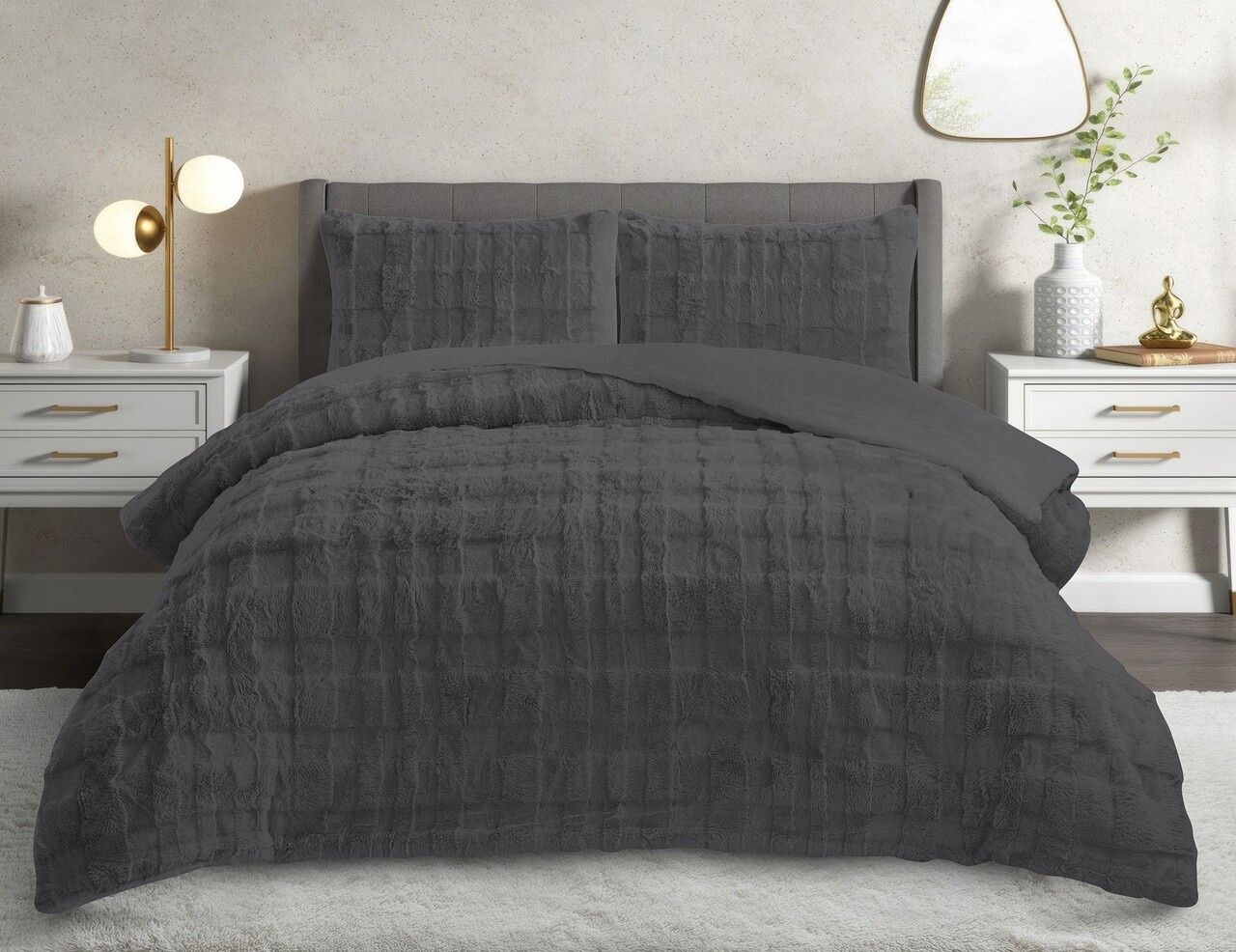 Set cuvertura si perna, Lessentiel Maison, Rabbit, Poliester, Antracit