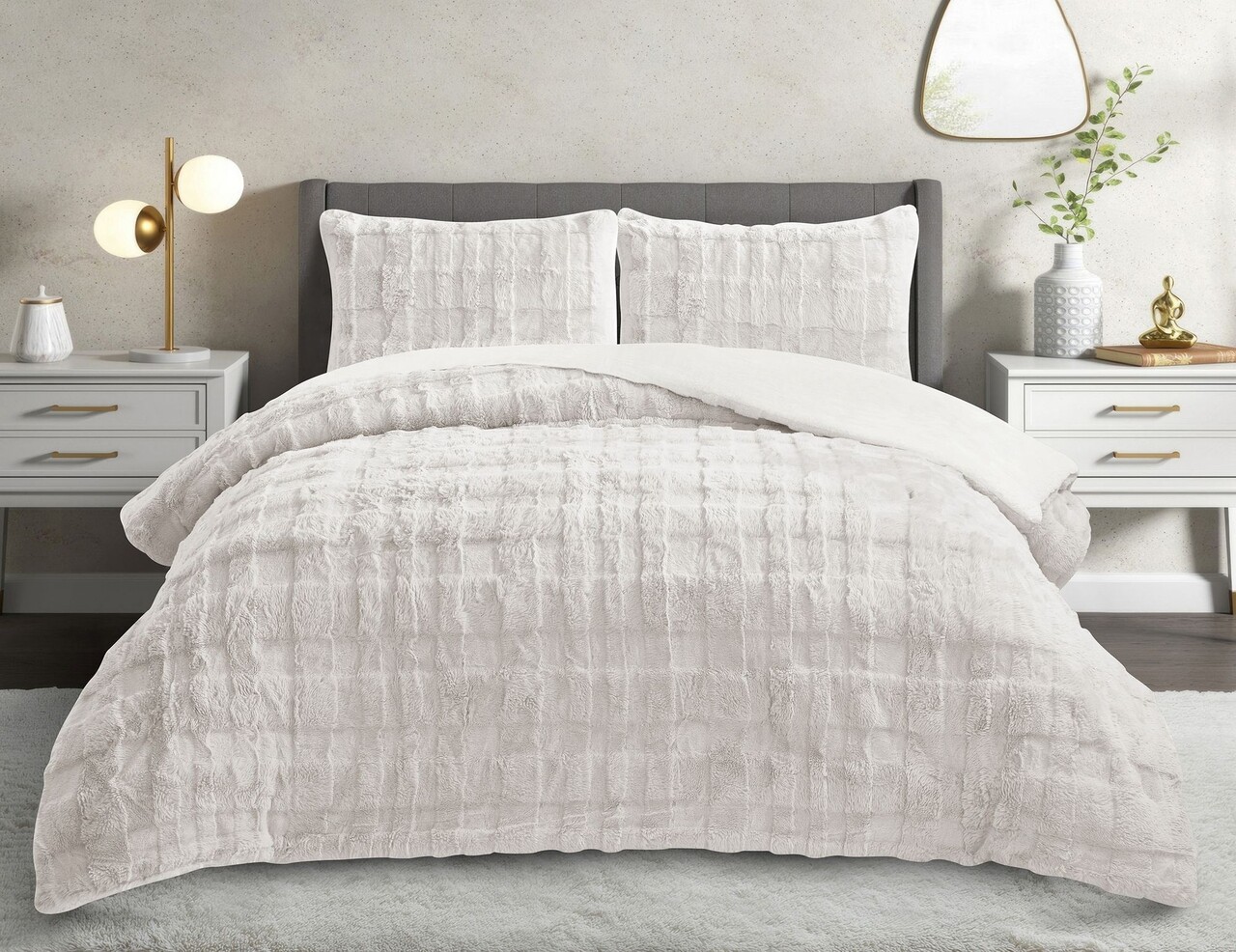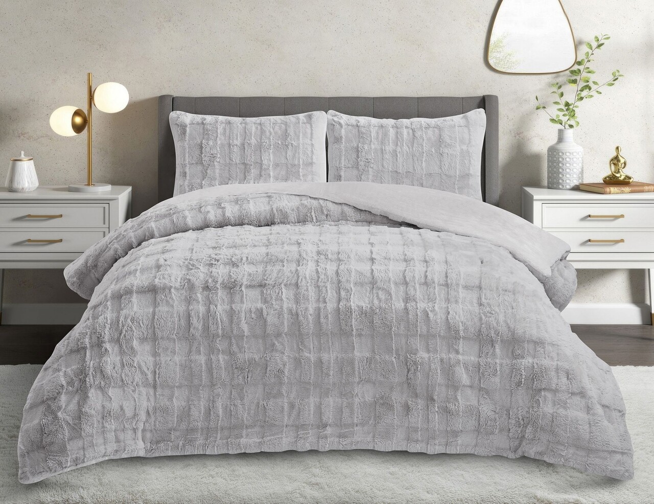 Set cuvertura si perna, Lessentiel Maison, Rabbit, Poliester, Gri