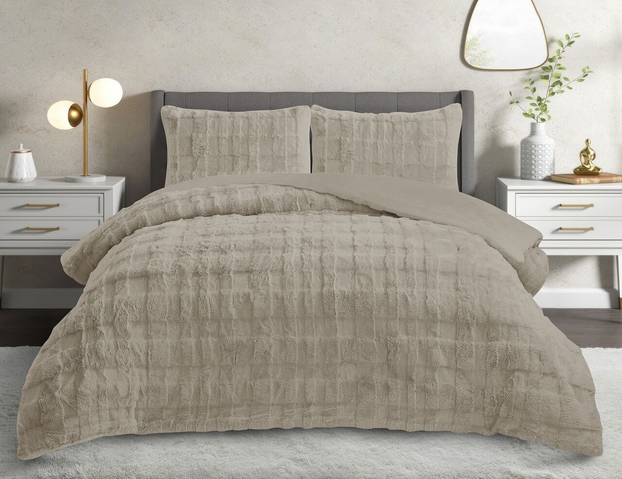 Set cuvertura si perna, Lessentiel Maison, Rabbit, Poliester, Cappuccino